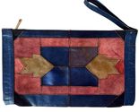 - Vintage 80s Mexican Patchwork Leather Clutch Purse bag Boho Southwest Talon Zip