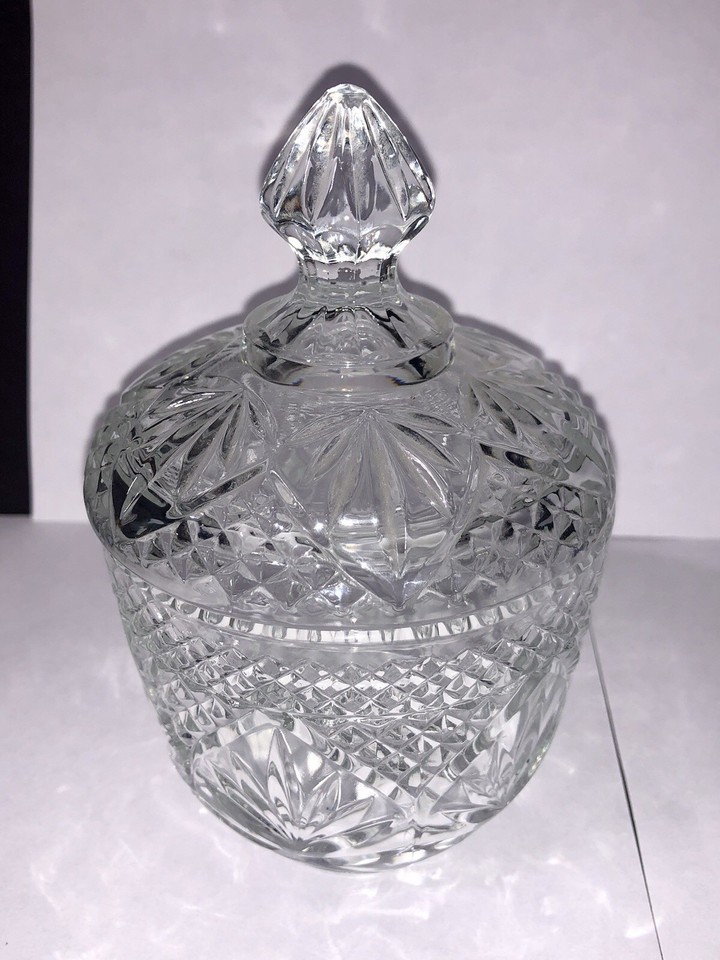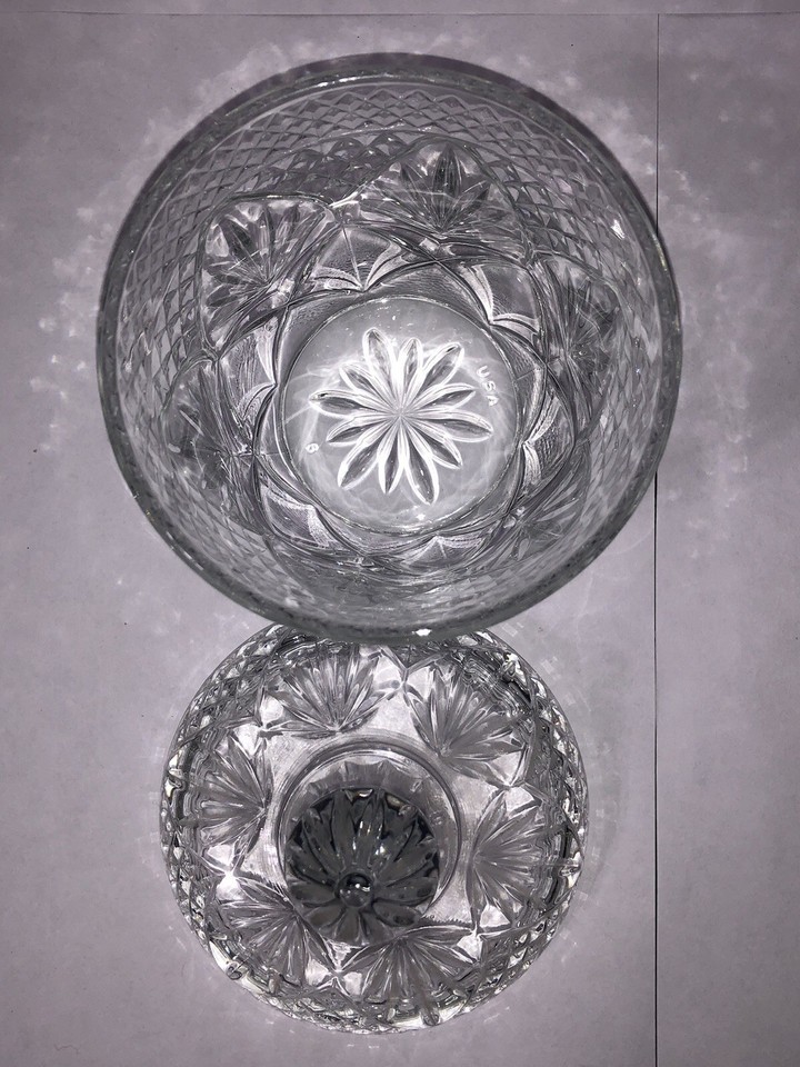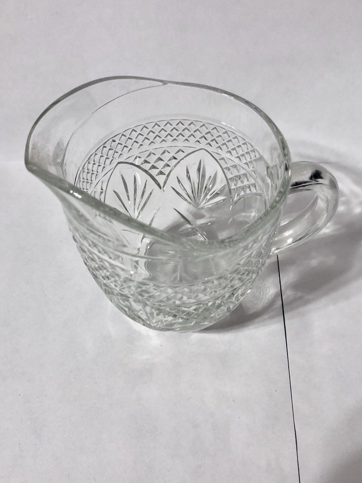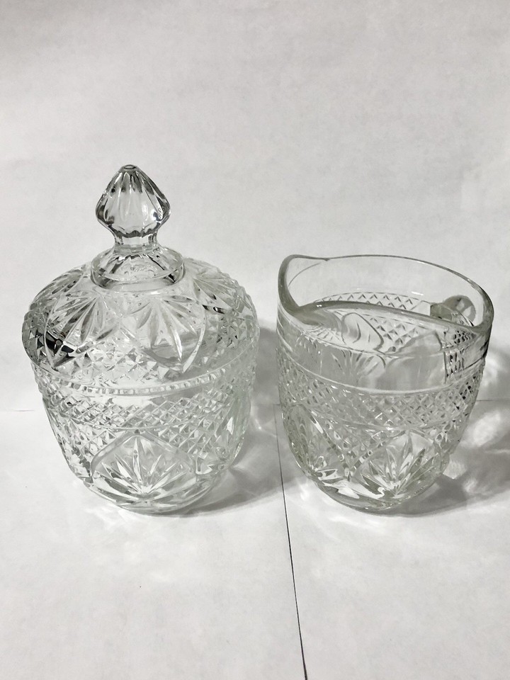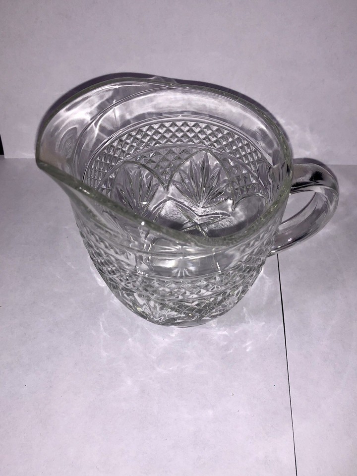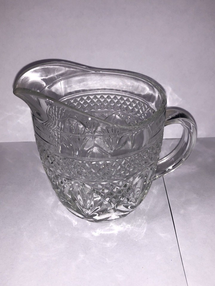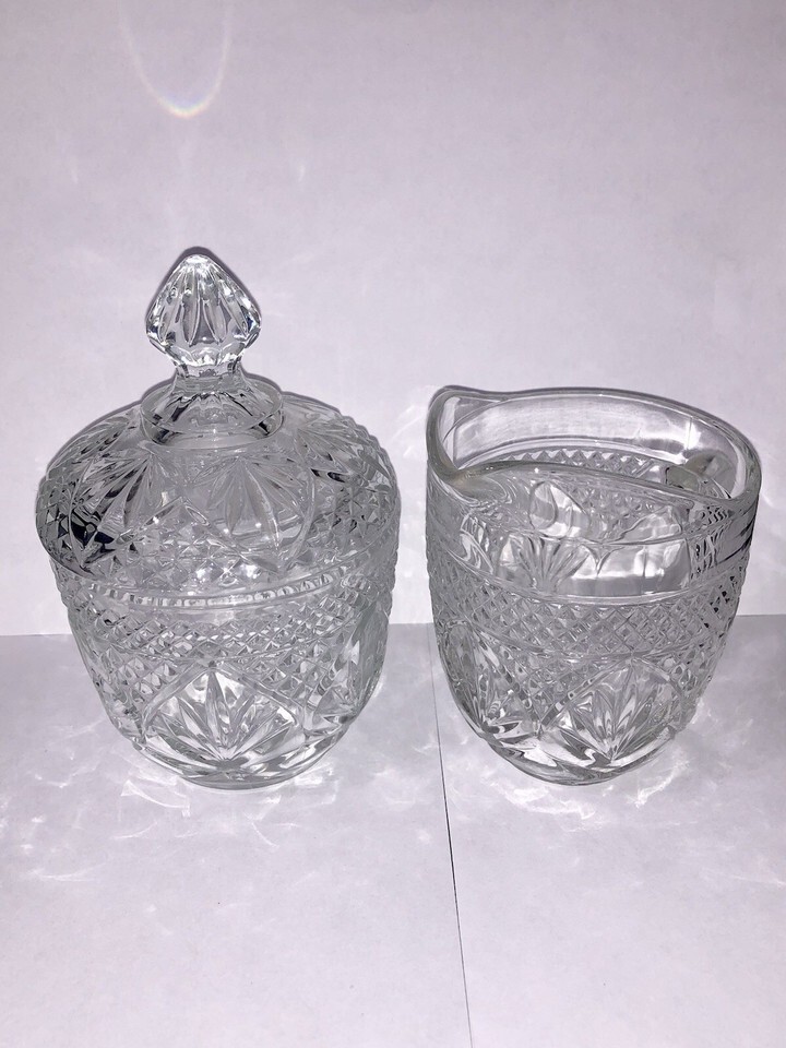 Vintage Anchor Hocking Wexford Crystal Glass Creamer Sugar Bowl Diamond Pattern