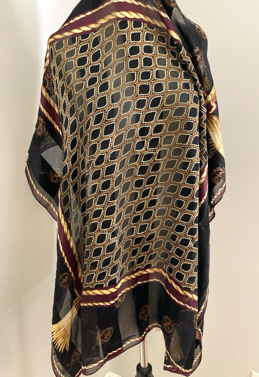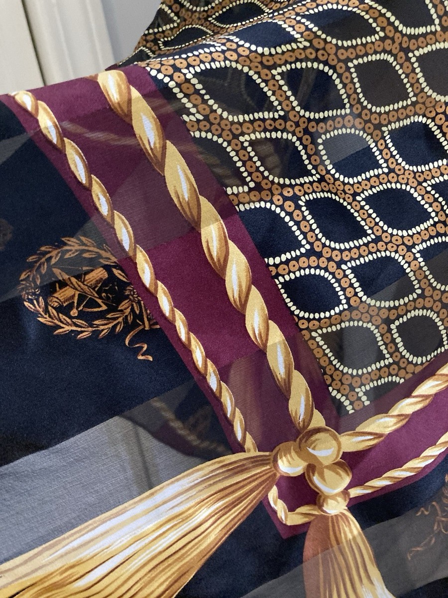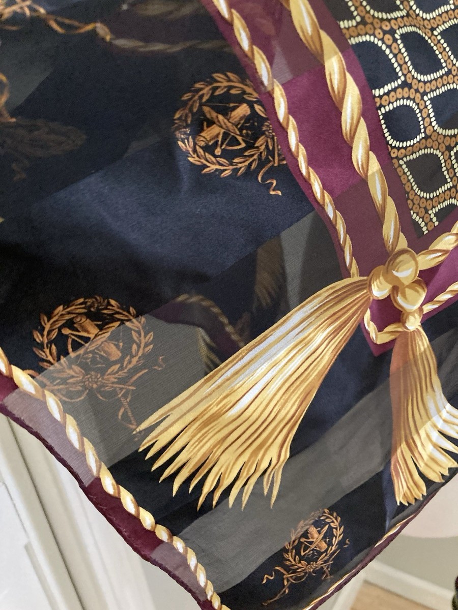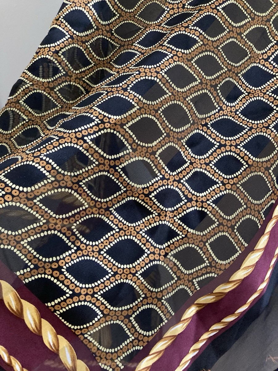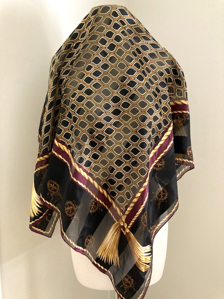 Vintage Anne Klein Tassels Rope Medallions Silk Scarf Japan BIG 35 Inch Square