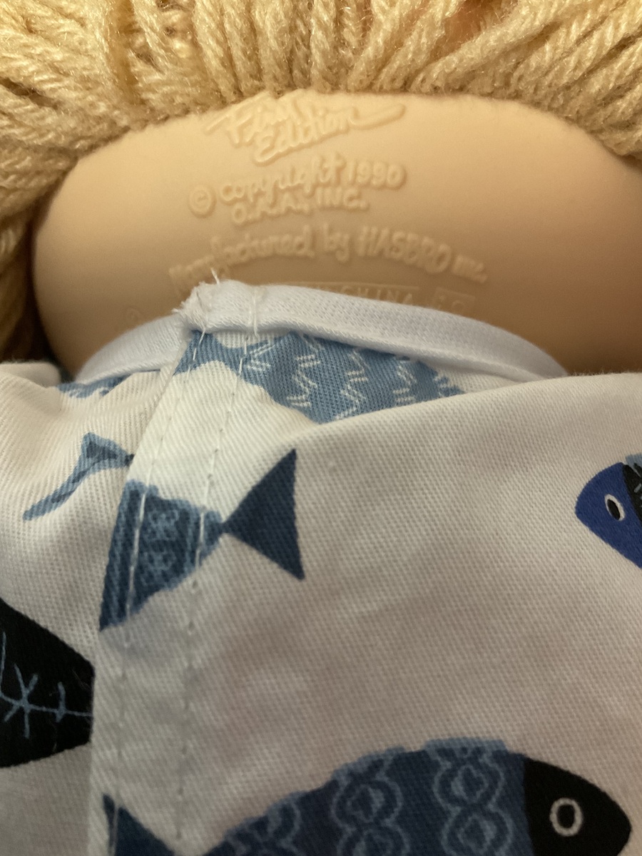 This little cutie has very long thick wheat hair and pretty brown eyes. Her side tag is still intact although it has faded and she has a rose 1989-90 signature. You can still tell that she is a HASBRO Posable Kid though. She has a little pouty expression on her face. How cute!! She is wearing a BRAND NEW dress and BRAND NEW matching handmade bloomers. She is also wearing a NEW diaper, beautiful lace socks, and shoes. She is in very good vintage condition for her age of 36-soon to be 37 but please bear in mind that she is still a vintage item-not new and therefore not perfect but definitely restored. Just look at her standing all by herself!! Please see all pics as they are part of the description. She comes from my smoke free home although I am not her original owner. Sold AS IS.