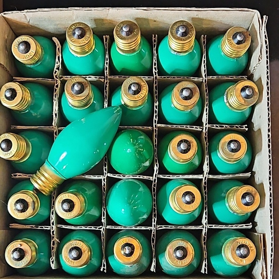 Large lot of C9-1/4 Christmas bulbs All match; same manufacturer, year and color intensity These are not tested, unused Opaque blue and green bulbs 46 bulbs Indoor/Outdoor Sold as is. Vintage