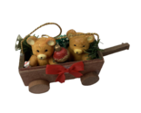 - Vintage Christmas Ornament Teddy Bears in Wooden Wagon Red Bow Holiday Decor