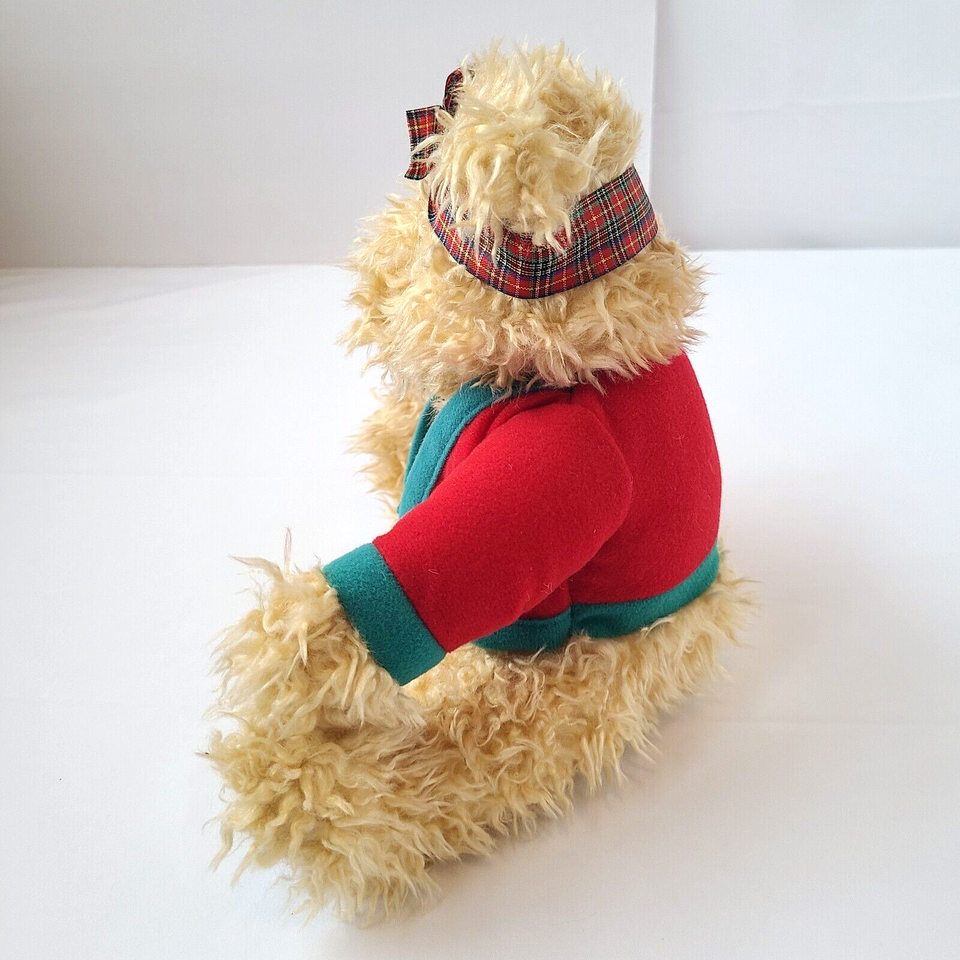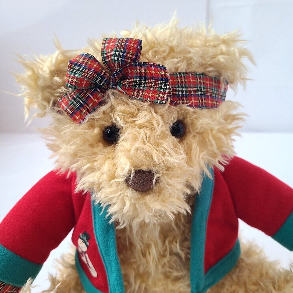 Vintage Christmas Teddy Bear Plush Stuffed Animal Plaid Headband Snowman Sweater