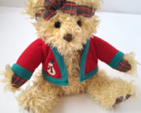 Primary image for Vintage Christmas Teddy Bear Plush Stuffed Animal Plaid Headband Snowman Sweater