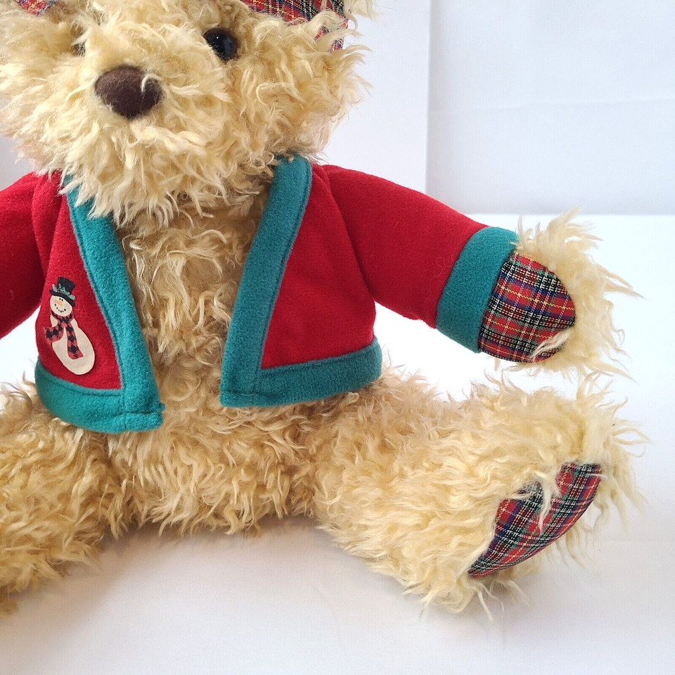 Vintage Christmas Teddy Bear Plush Stuffed Animal Plaid Headband Snowman Sweater Hallmark 10 inch Good pre-owned condition. No major flaws, gently used. Please view all photos.
