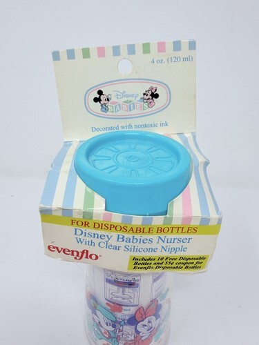Listing is for a vintage 90s Evenflo nurser featuring Minnie and Mickey mouse. This is for their disposable bottle aka drop ins line. 4oz size, new on card. Please read entire listing, view all pictures, and ask any questions before making a purchase. Please let me know if you have any issues after purchase before leaving feedback. I stand behind my items.