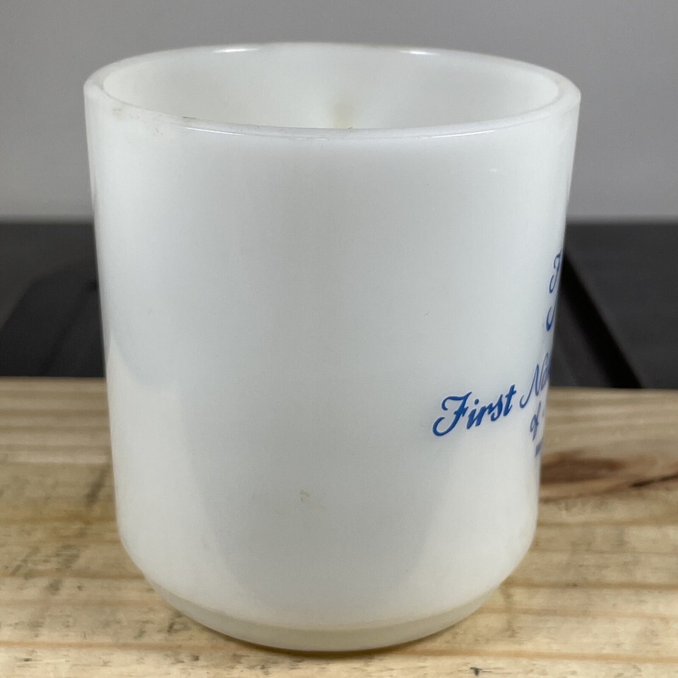- Vintage Galaxy Milk Glass mug first national bank of Newton Texas