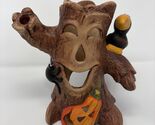Vintage Halloween Ceramic Tree Stump candle Holder Spooky Face Jack-o-Lantern