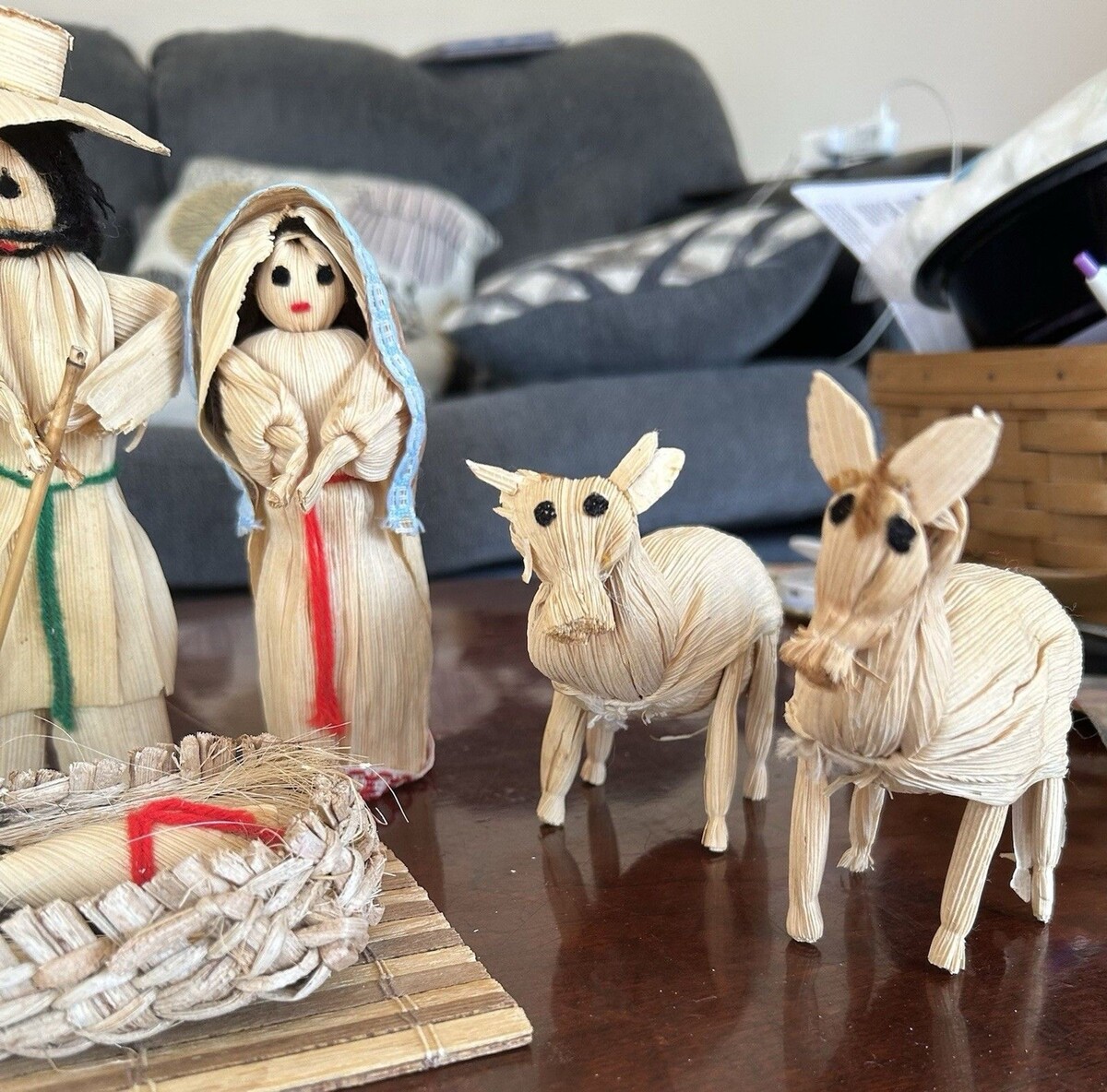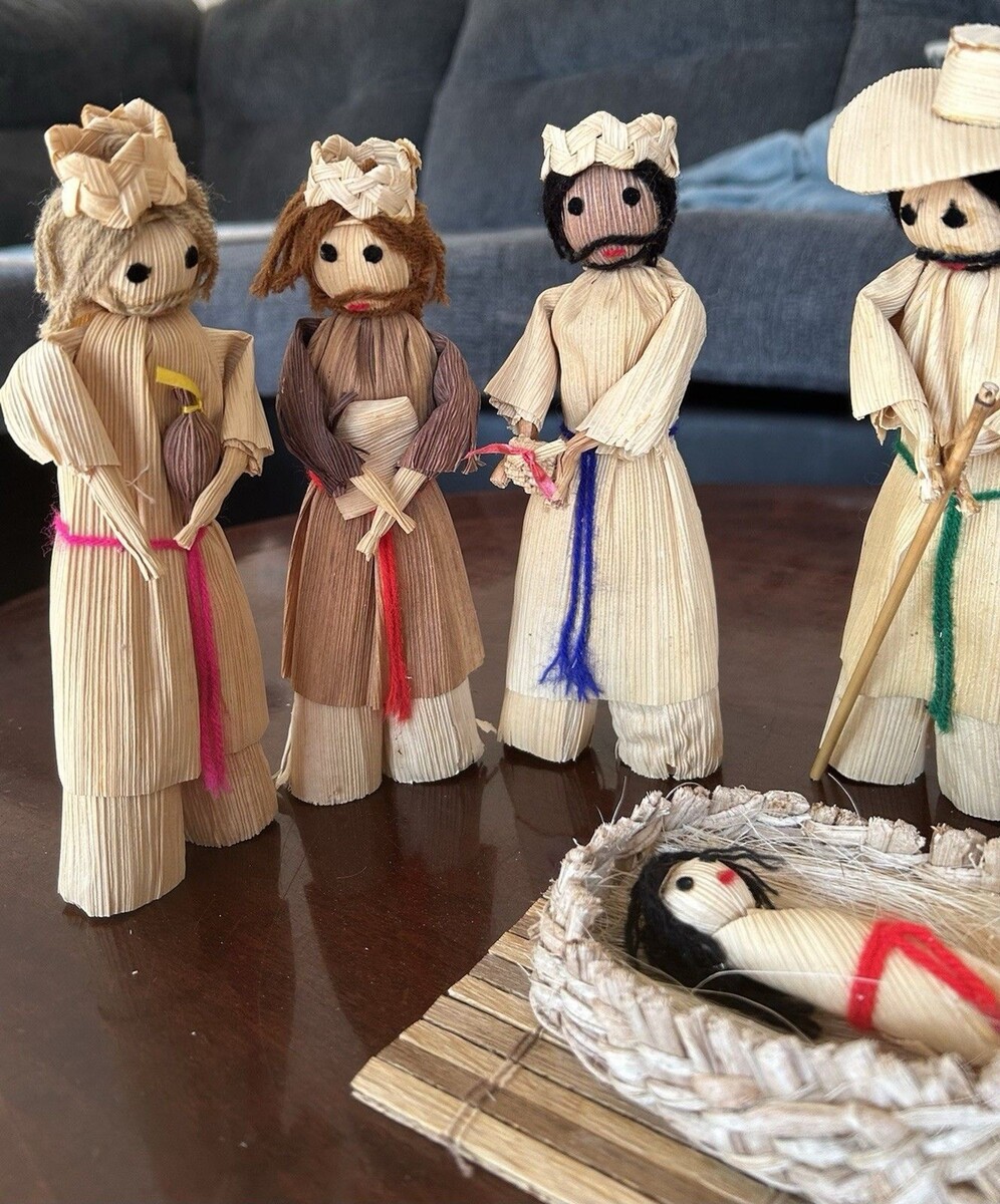 - Vintage Handmade Folk Art Corn Husk Nativity Scene