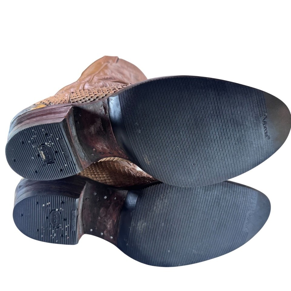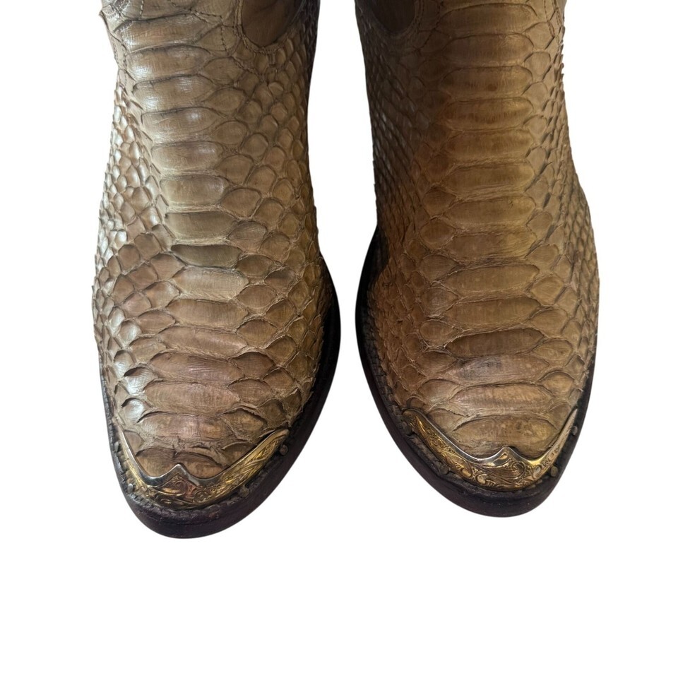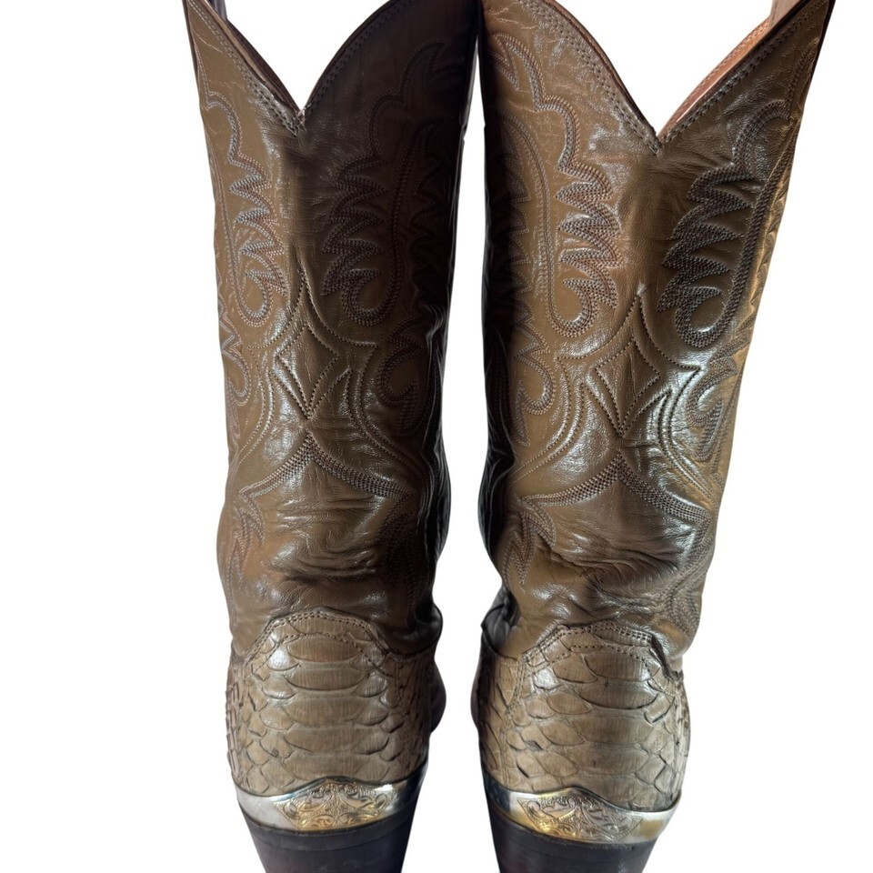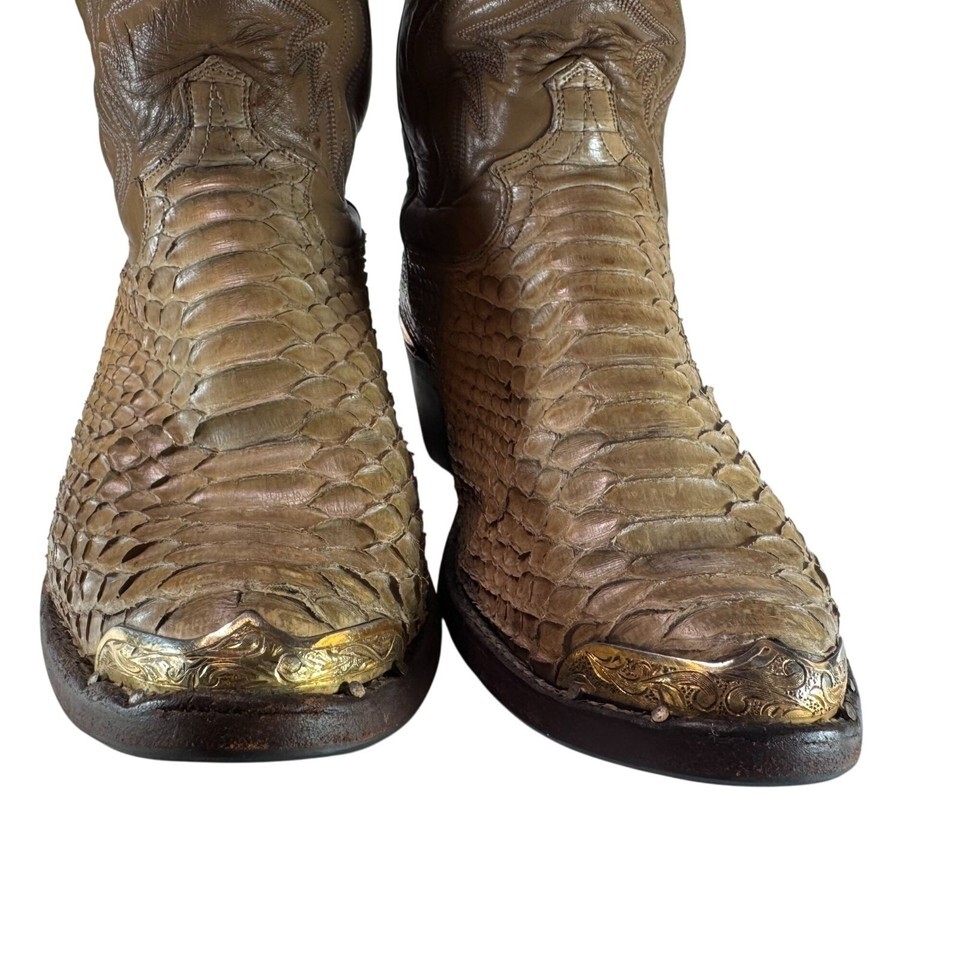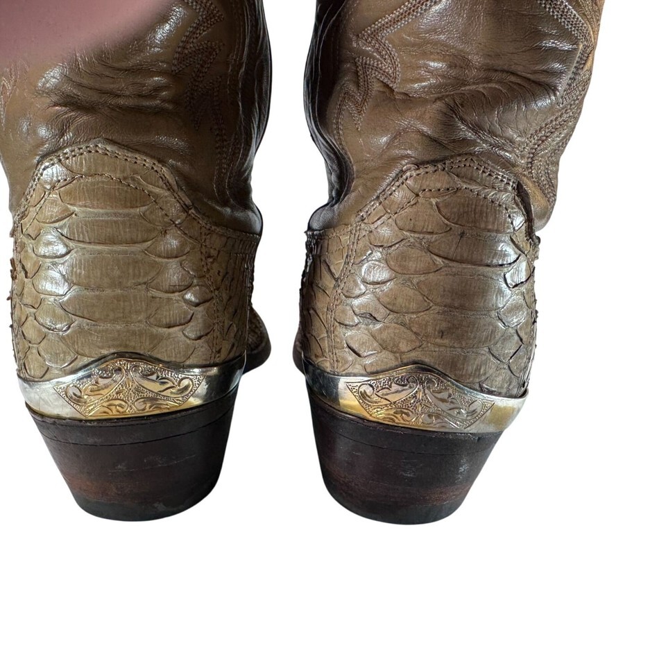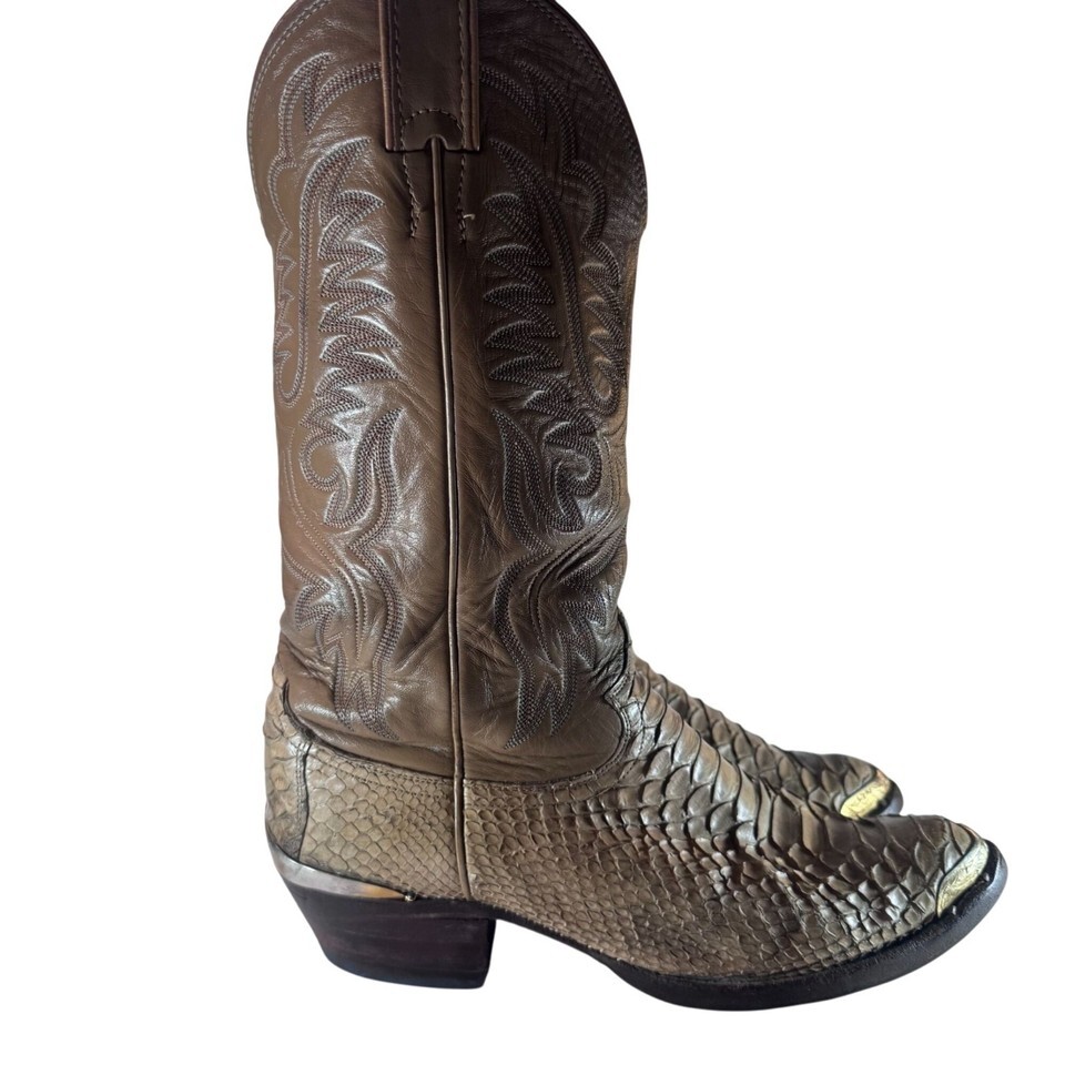 - Vintage Justin Snakeskin Bottom/Leather Upper Cowboy Boots Tan Men's Sz SEE PIX