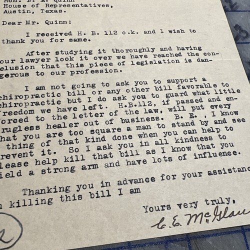 - Vintage Letter Beaumont Texas chiropractor 1930s Political H.B. 112