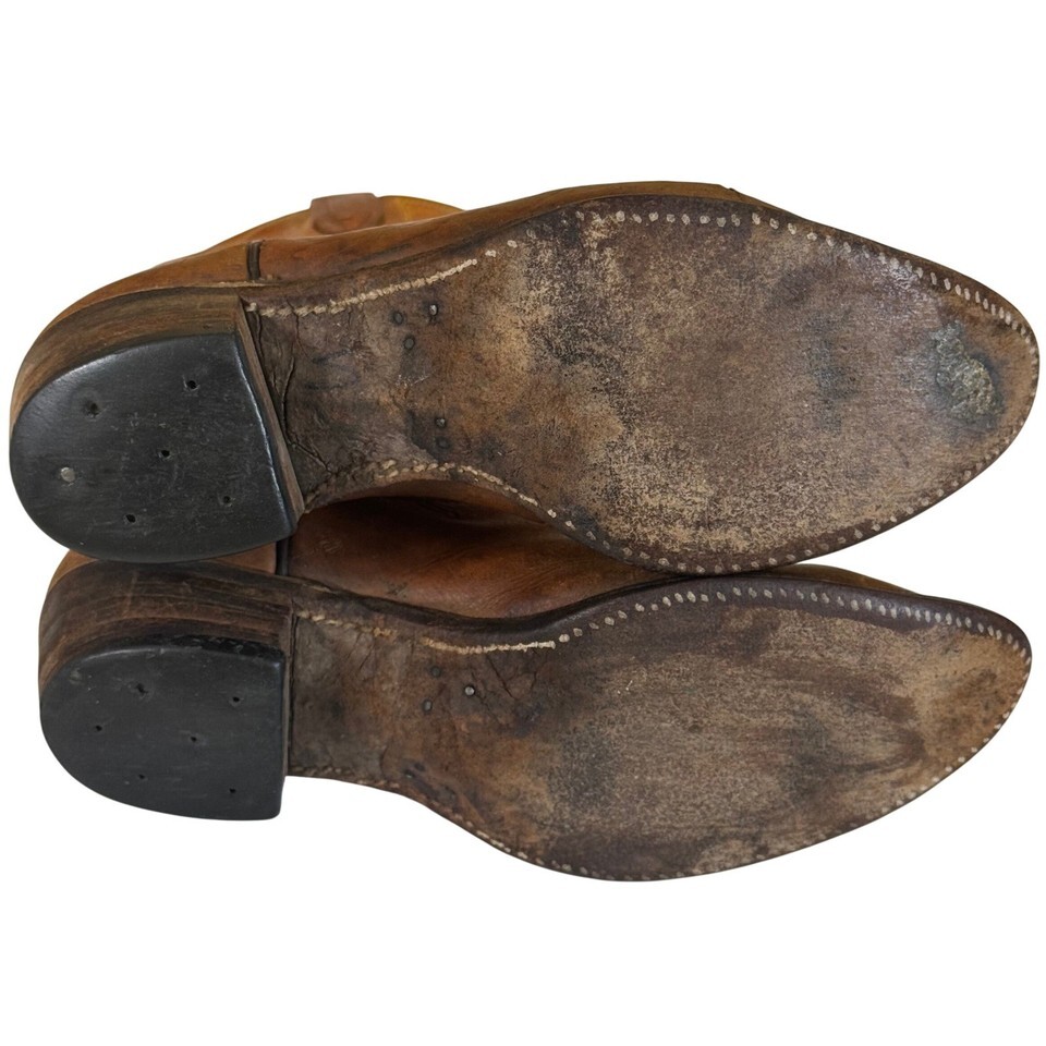 Vintage Light Brown Leather Cowboy Boots Handmade Style Mexico/Texas 7–7½ Men's