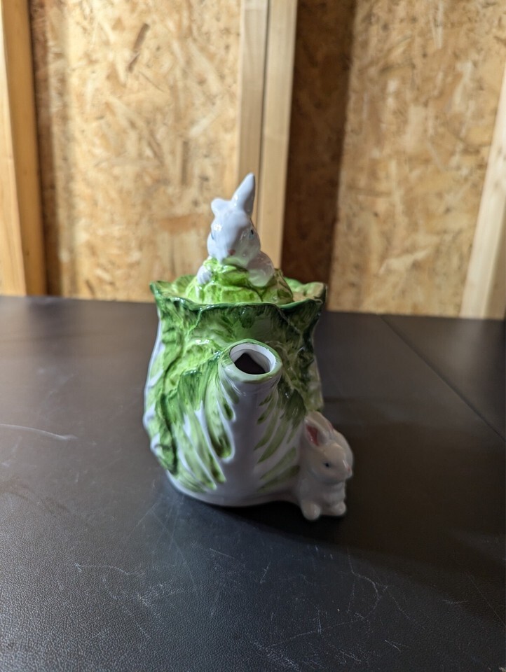 Vintage Made in Taiwan Decorative Bunny In Cabbage Teapot 34 oz.
