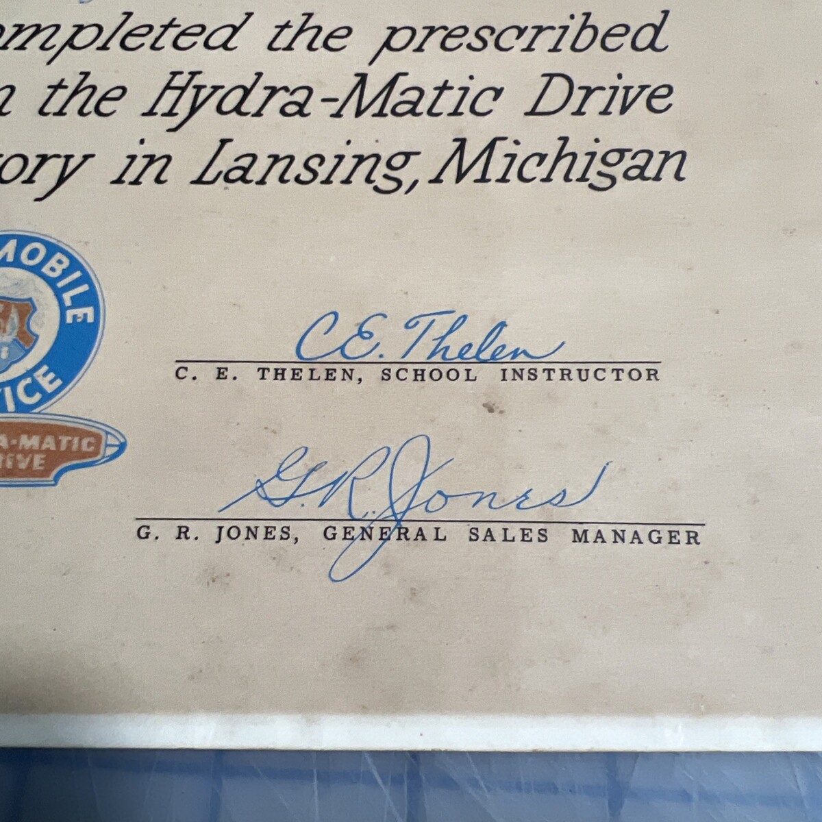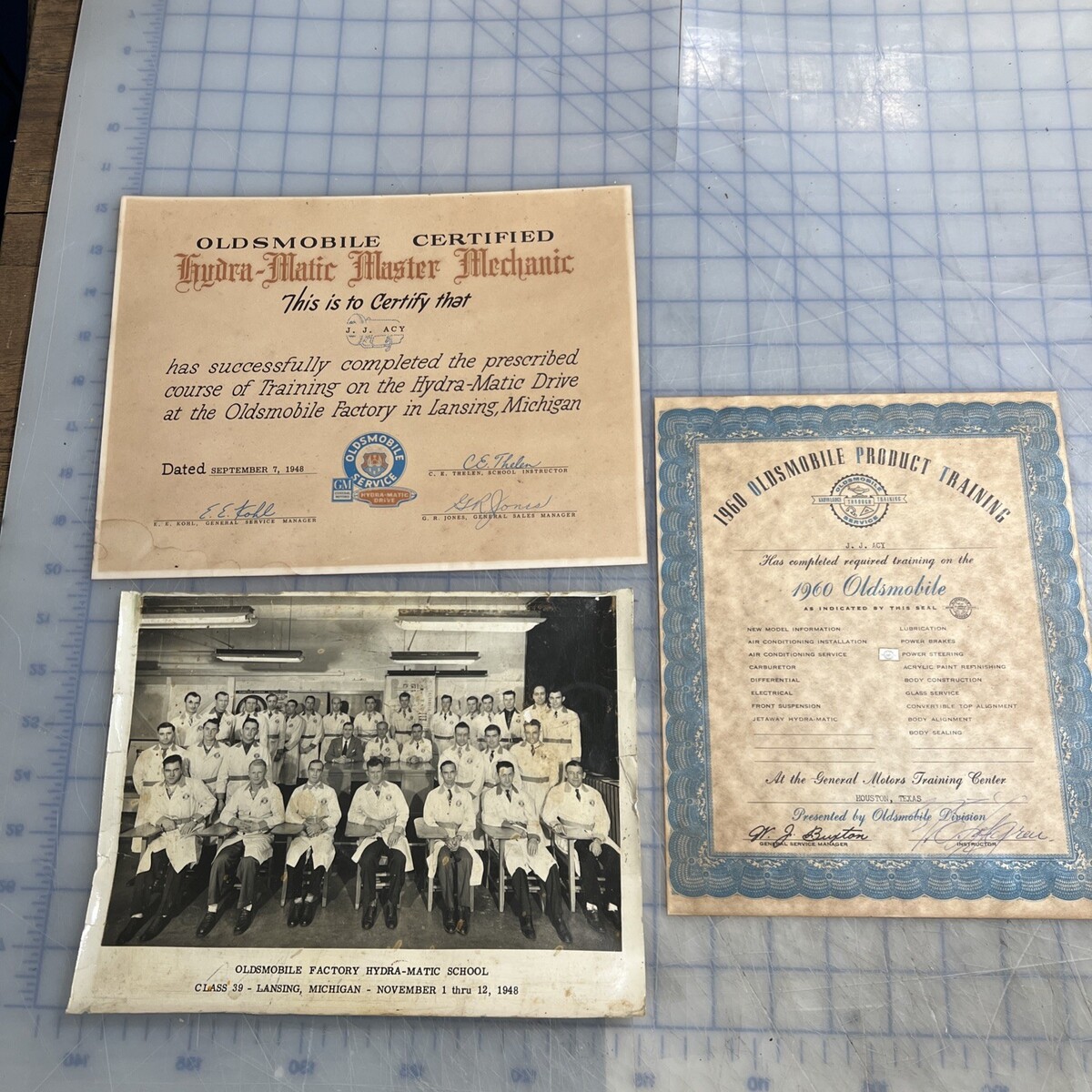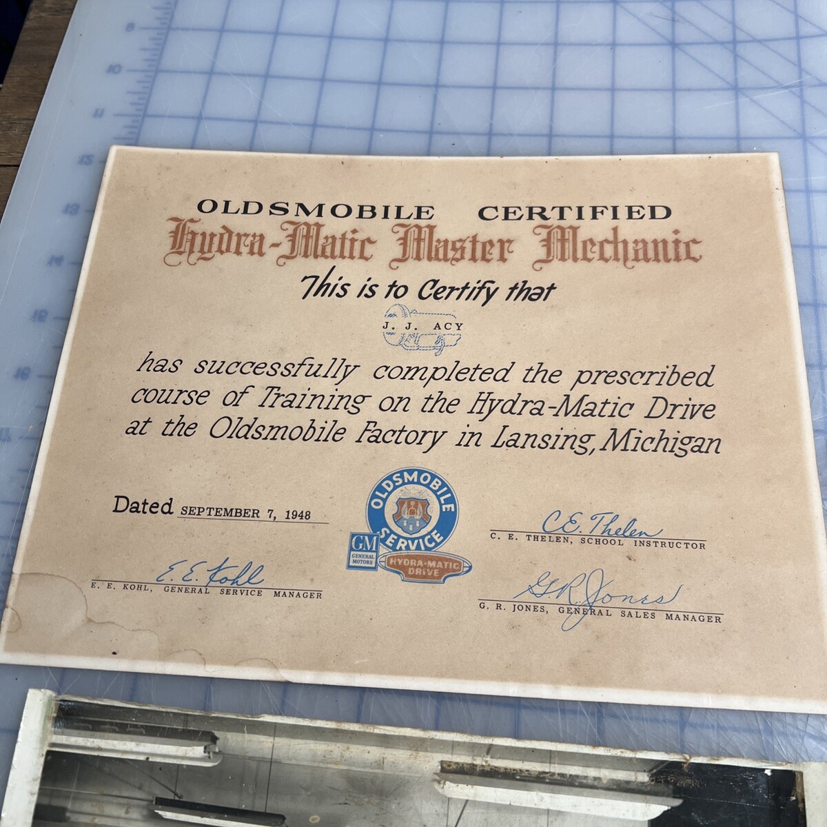 - Vintage Oldsmobile Certificate Hydra-matic Master Mechanic w/ Photo 1948