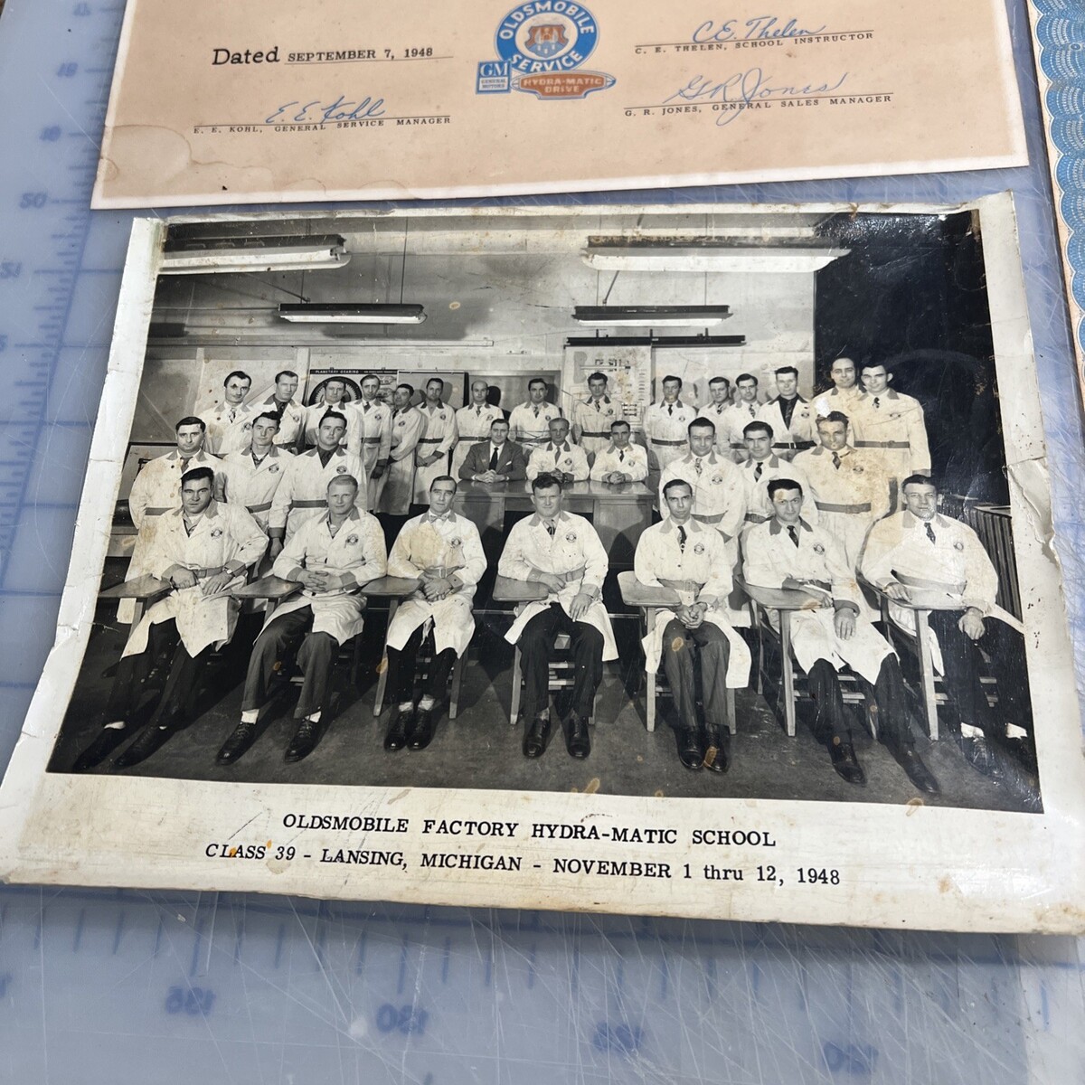 Vintage Oldsmobile Certificate Hydra-matic Master Mechanic w/ Photo 1948
