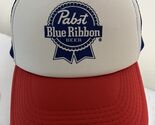 The Vintage Pabst Blue Ribbon Beer Snapback Mesh Foam Crown Trucker Cap Hat is a stylish retro accessory perfect for fans of the 1980s era. Made with a mesh material in a classic red, white, and blue color scheme, this hat features an adjustable snapback closure for a comfortable fit. The original design and vintage look make it a unique addition to any wardrobe, adding a touch of nostalgia to your outfit. Whether you're a collector or just looking to add a casual yet eye-catching piece to your hat collection, this Pabst Blue Ribbon cap is sure to make a statement. This is in excellent shape.