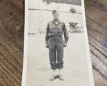 Vintage Photograph Soldier At attention WWII 1943 3 1/2 x 5 1/2”