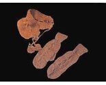 Adorable hand knit mittens and hat in a mocha color with a cable knit pattern in the center. These were used in a recent filming of a movie called "Horizons". The hat measures 16? from end to end on the body and 6? across. The mittens are 9? long and about 3? across and are in excellent condition.