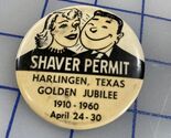 Vintage Shaver Permit Pinback Button Harlingen TX Golden Jubilee 1960.