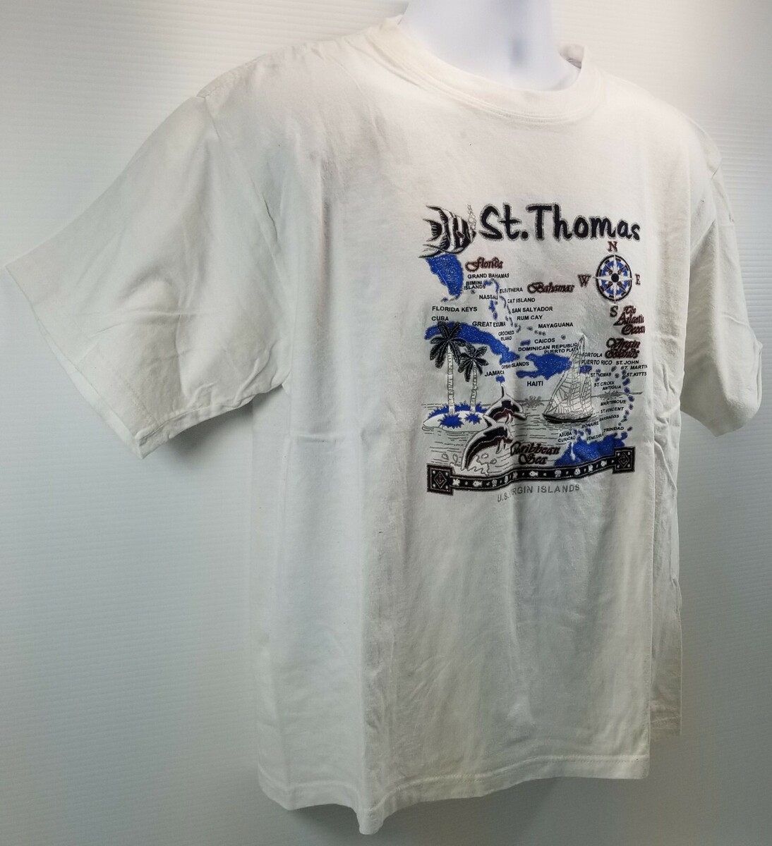 Vintage St. Thomas US Virgin Islands Men's XXL Vacation Souvenir White T-Shirt