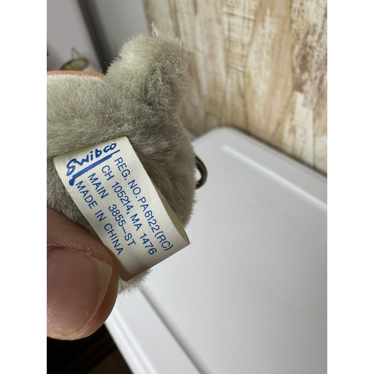 Vintage Swibco Gray Plush Elephant Head Keychain Stuffed Bag Charm