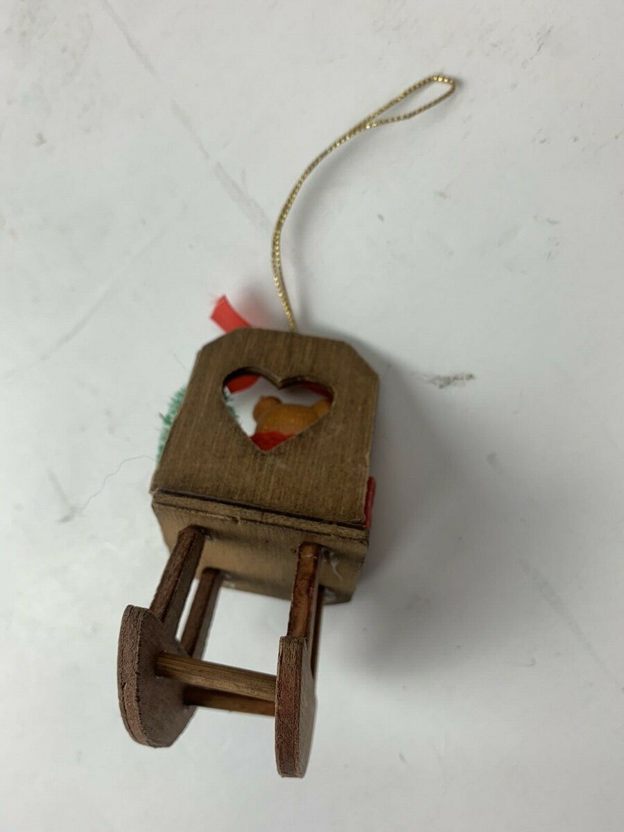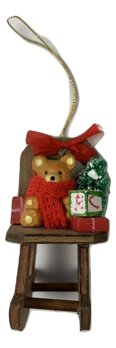 - Vintage Teddy Bear Figurine Chirstmass Ornament In Rocking Chair Brown 3"