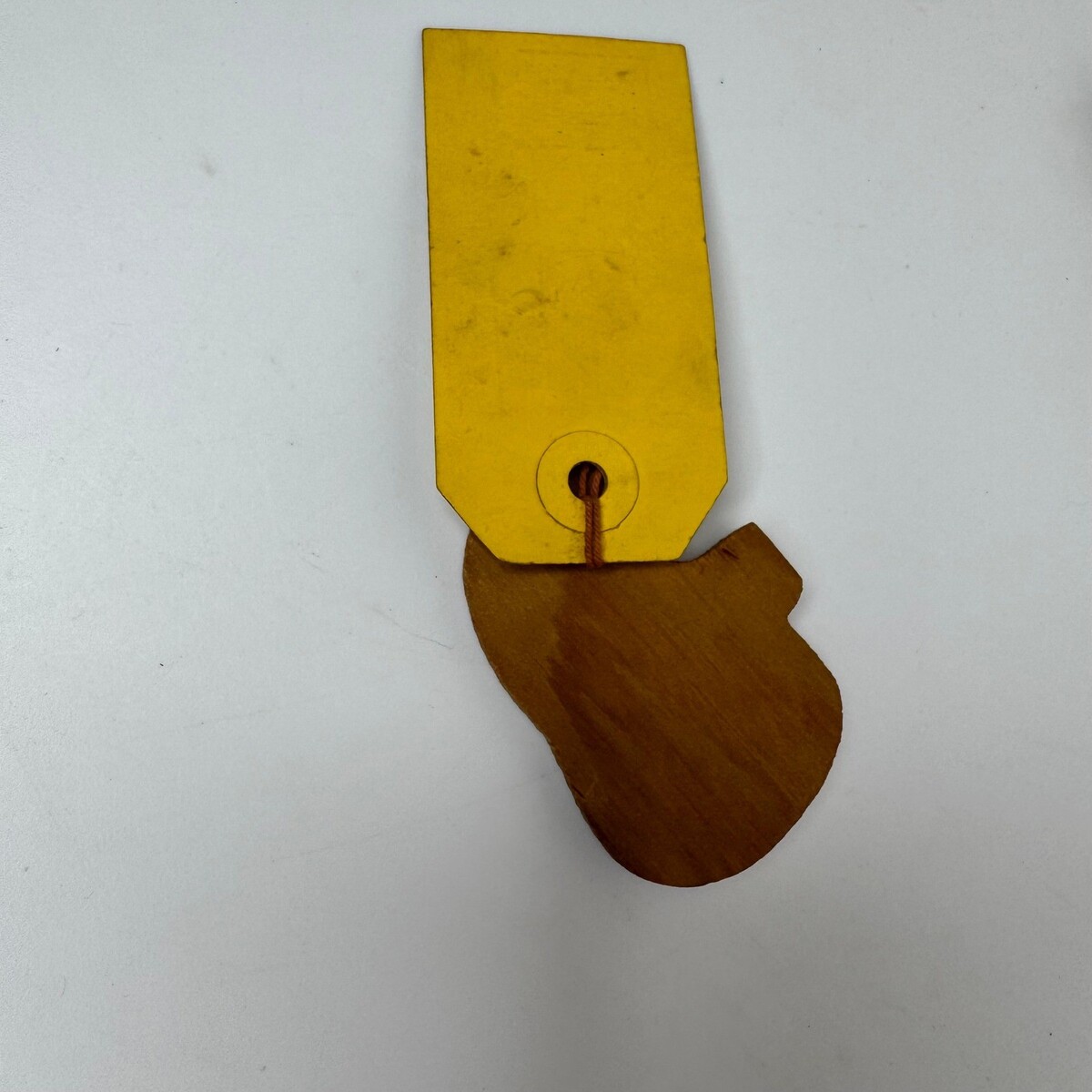 Tag has discoloration Measurements: ? Elephant Length: 2.5 in Keywords: wooden elephant, hand carved, vintage decor, souvenir, Fredonia New York, postcard tag, folk art, desk accessory, paperweight, kitschy, quirky, collectible figurine