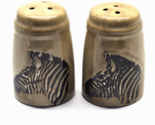 - Vintage Zebra Salt & Pepper Shaker Set With Stoppers Stoneware Pottery Brown 3"