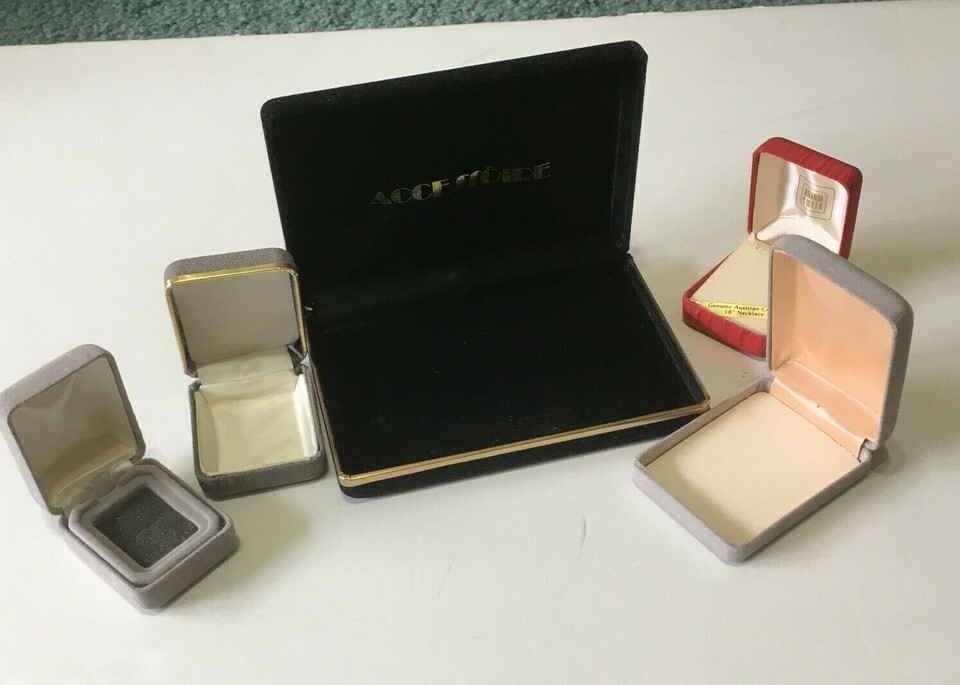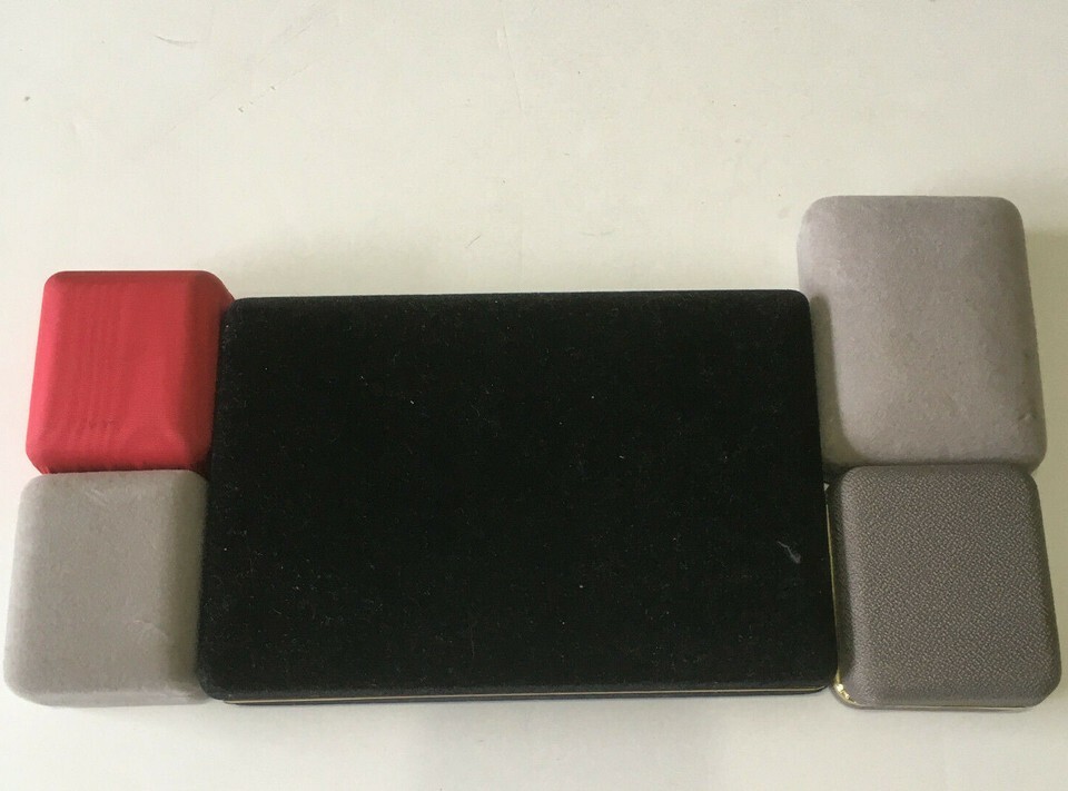 - Vintage empty jewelry cases display presentation 5 box lot gray black red boxes