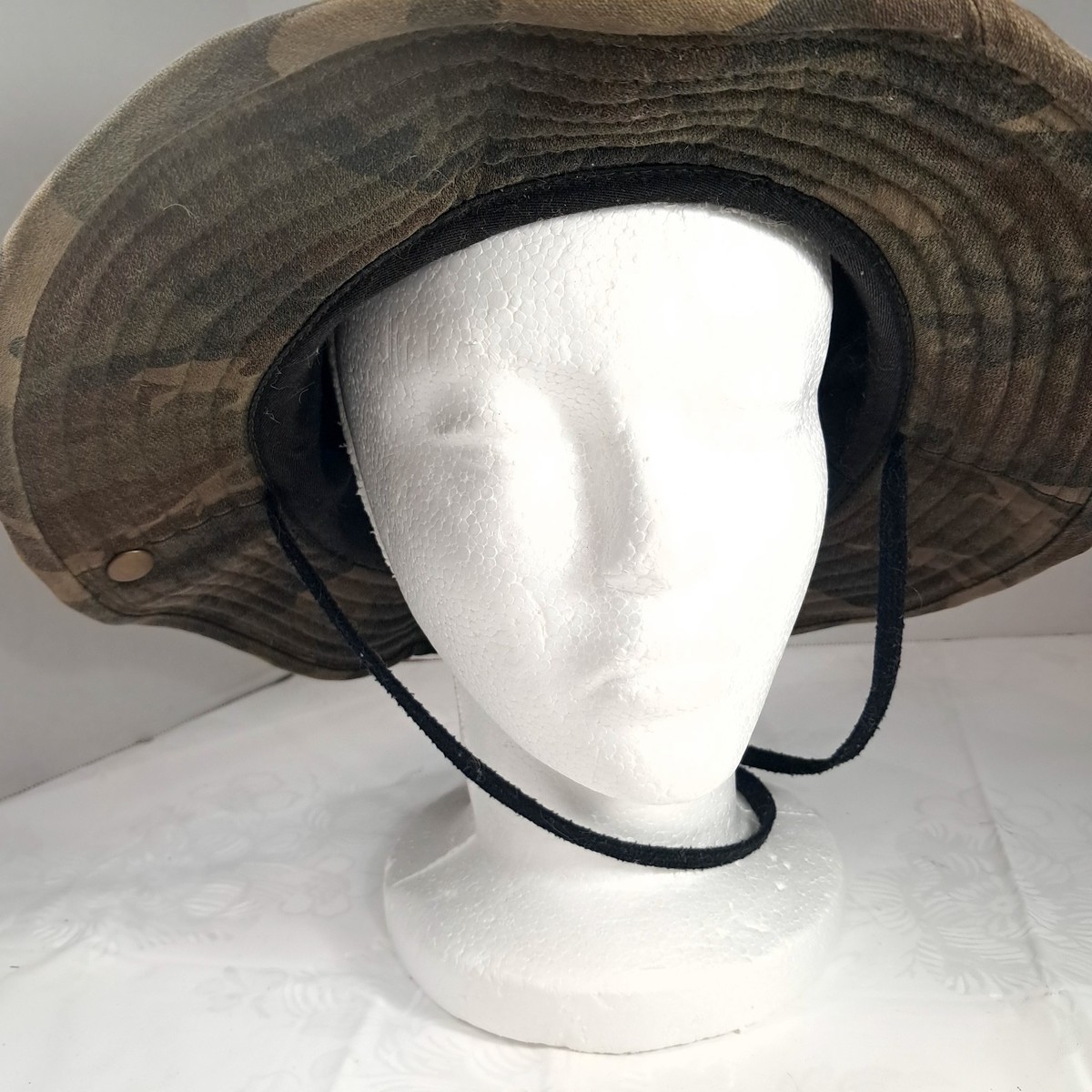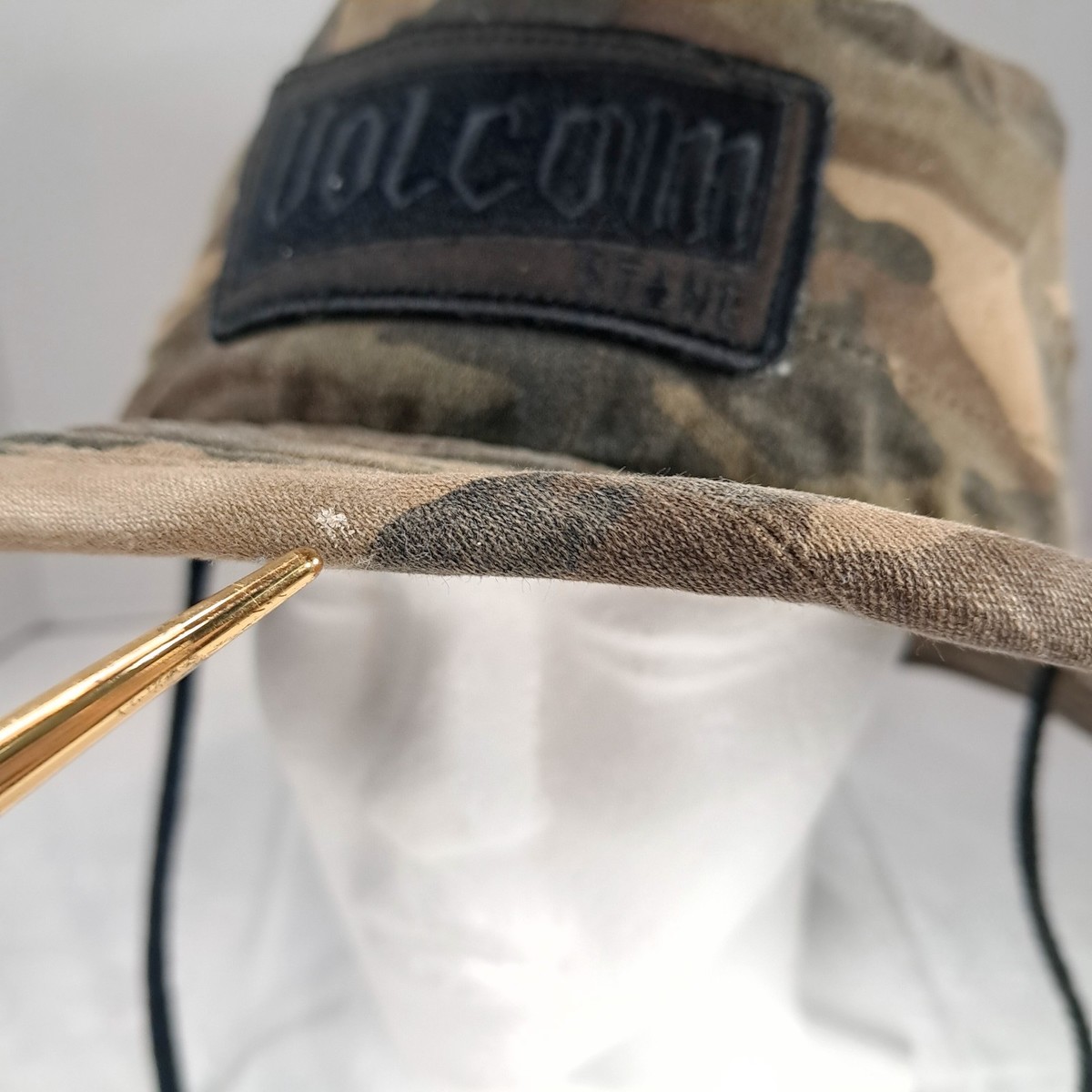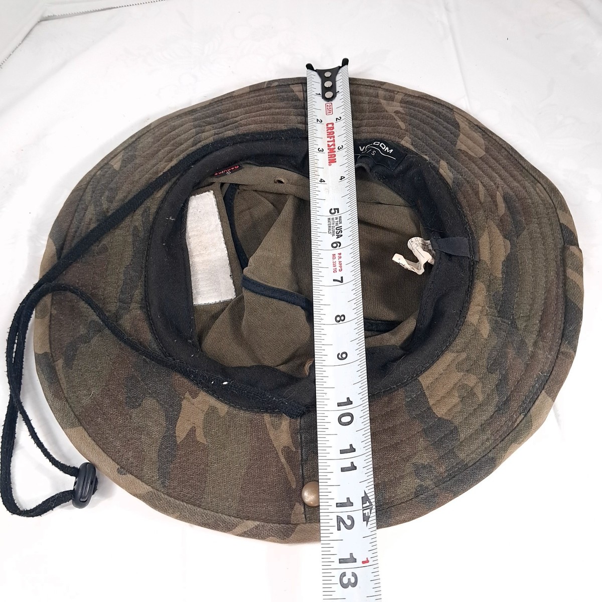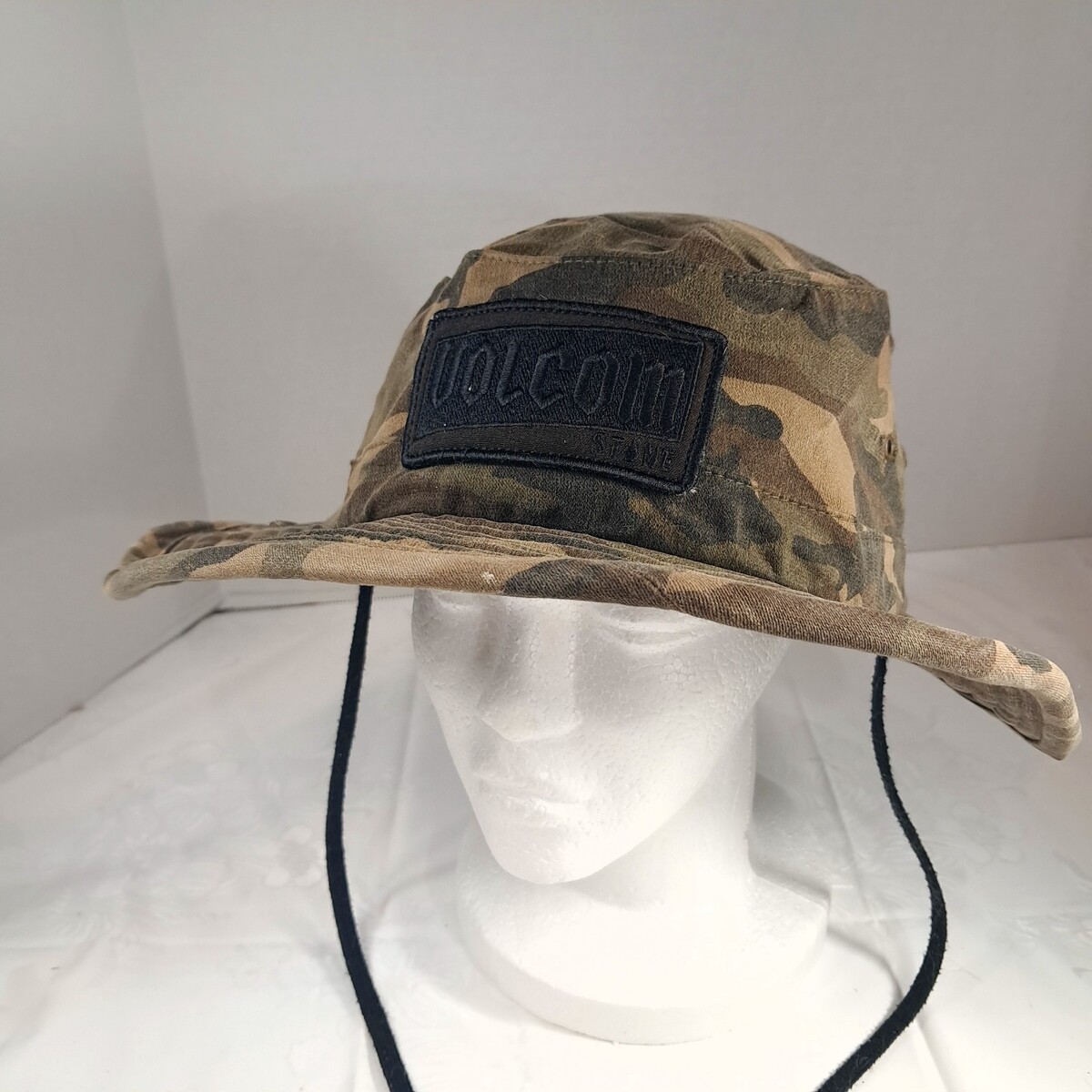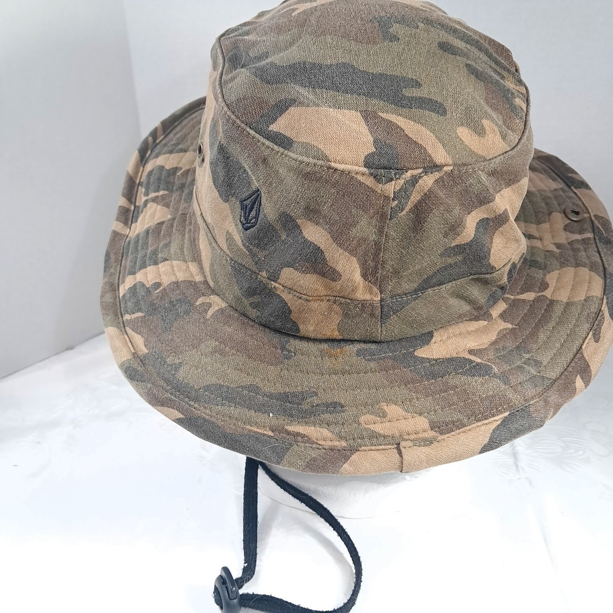 Volcom Stone Bucket Boonie Hat Camo Camouflage fishing Camp Hike Boat sun O/s Camo hat with chin strap. Some wear/small marks as shown. See pics.