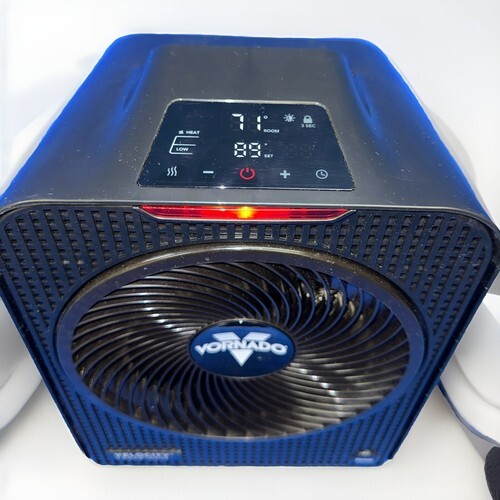 Tested and all functions are working properly. Great heater for the price. The Vornado EH1-0161-06 is a versatile and powerful electric space heater designed to provide efficient warmth to any room. With a 1501-2000 WATT rating and a forced air velocity of 5, this heater is an effective solution for areas requiring immediate heat. It's compact design, measuring 7.5 inches in length, 9 inches in width, and a height of 10.4 inches, allows for easy placement on a floor or desk/tabletop. Featuring a digital control style for easy adjustments, the heater offers two heat settings and a convenient timer feature to maintain a comfortable temperature. It's resin construction ensures durability while the 120V voltage and 72-inch cable provide practicality and convenience. This model is suitable for a coverage area of 201-250 sq ft and is constructed with quality craftsmanship from China.