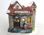Primary image for Vtg Carolina Design Ceramic Train Station Tealight Candle Holder Holiday Village