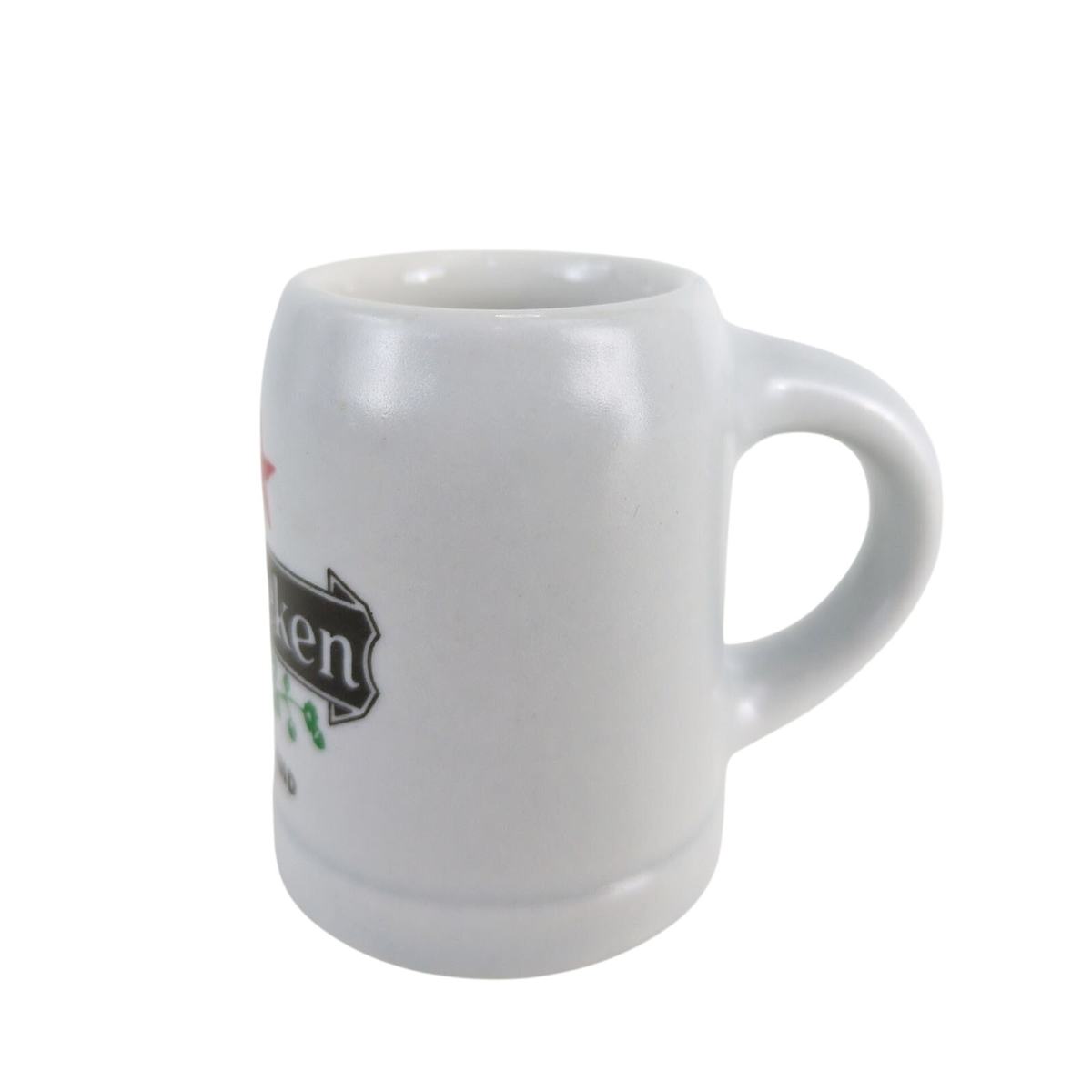 Vtg Heineken Holland White Stoneware Mug Shot Glass Mini 2.5" Beer Stein 60s-70s Made of a heavy stoneware, it features a wide base, loop handle and the pre-90s style Heineken Red Star logo. Measures 2-3/8" tall, 1-7/8" diameter base. Estimated to be from the 1960s-1970s era as a promotional souvenir. Excellent condition, no chips or cracks.