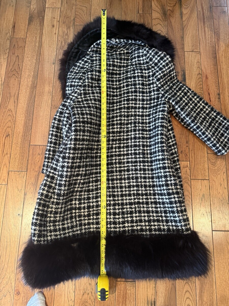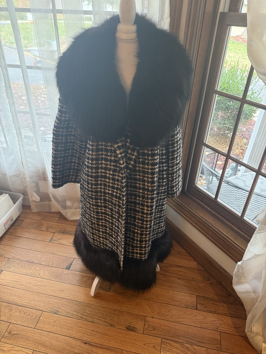 - Vtg Lady Stanley by Berroco Black/ White Plaid, black Mink Collar Trim