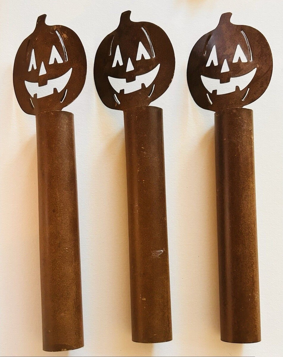 - Vtg Rustic Metal Pumpkin Electric Candlestick Covers Halloween Fall Decorations