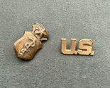 This authentic WWII-era U.S. Army Medical Department collar insignia pair includes: ? ?U.S.? service pin marked KREW ? 1/20 SIL-FILLED ? G1, indicating 1/20 silver-filled construction by Krew Co., a WWII-era insignia maker. ? Medical Department enlisted badge, featuring the Rod of Asclepius on a shield above a five-point star, symbolizing enlisted medical personnel. Reverse marked S-21, attributed to Vanguard or Amcraft subcontractors (circa 1940s?1950s). Each measures approximately 1 inch tall. Both pins retain their original patina and posts, showing light age wear consistent with period service. Condition: Very good vintage condition with expected surface toning. See photos for details. Era: World War II to early Korean War Materials: Silver-filled metal alloy Collectible use: Military display, shadow box, or uniform restoration