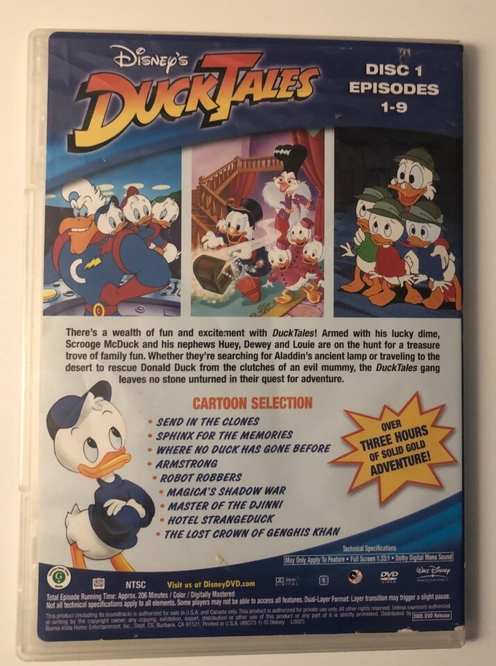 Walt Disney's Duck Tales DVD Volume 1, Discs 1-3, Episodes 1-27. You will receive the DVDs Covers shown in the pictures. DVD?s are in good, clean, pre-owned, working condition. Calculated shipping is applied to cart when you purchase multiple items.
