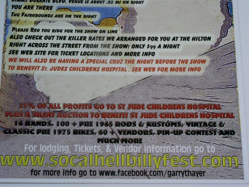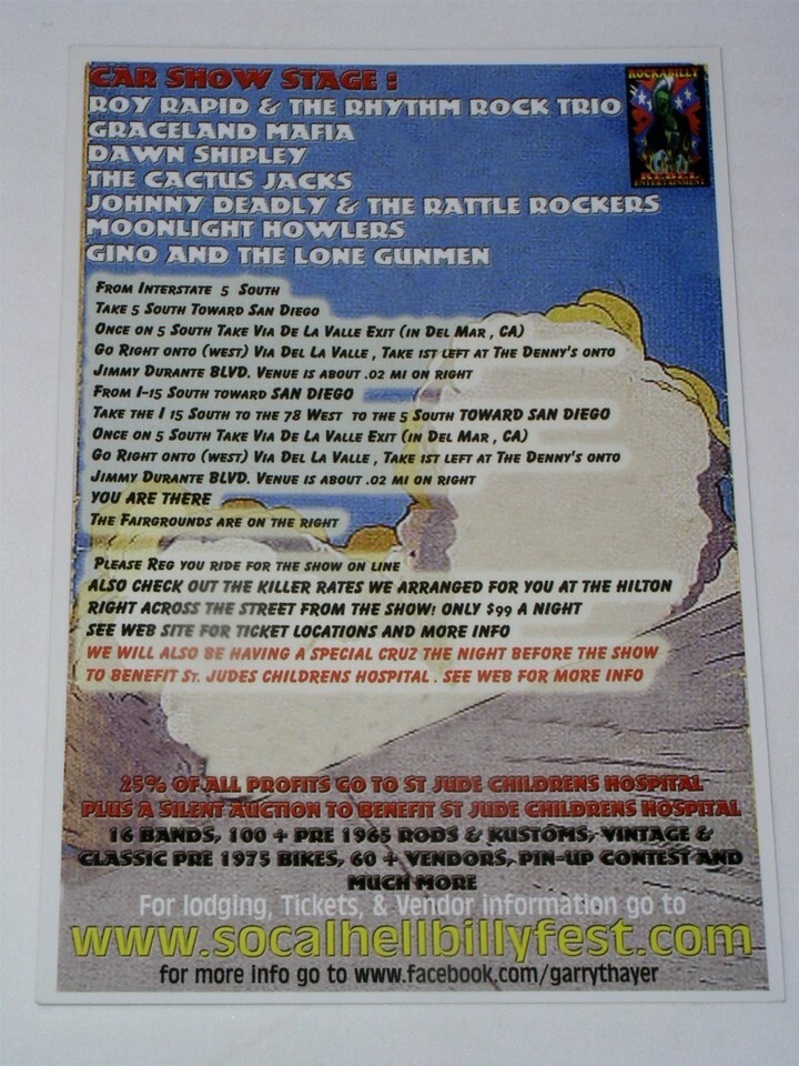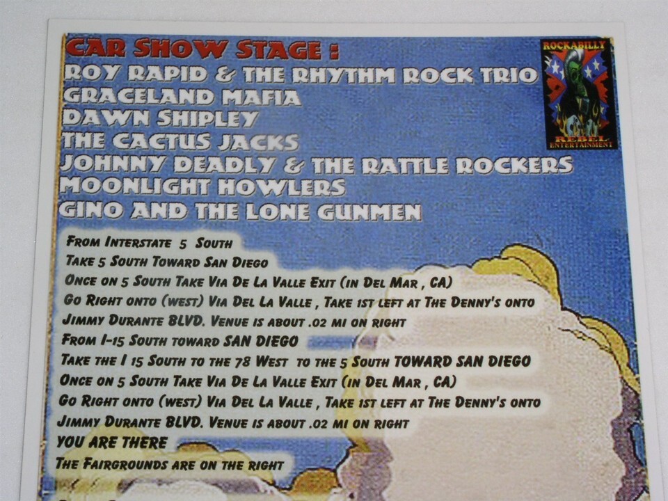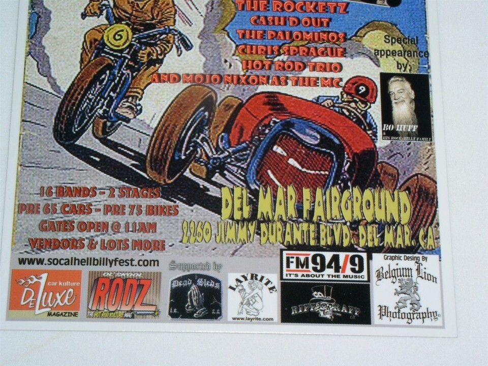 Other acts on the bill: Big Sandy, Three Bad Jacks, The Rocketz, Cash'd Out, The Palominos, Chris Sprague, Hot Rod Trio, Mojo Nixon As The MC, Special Appearance By Bo Huff.