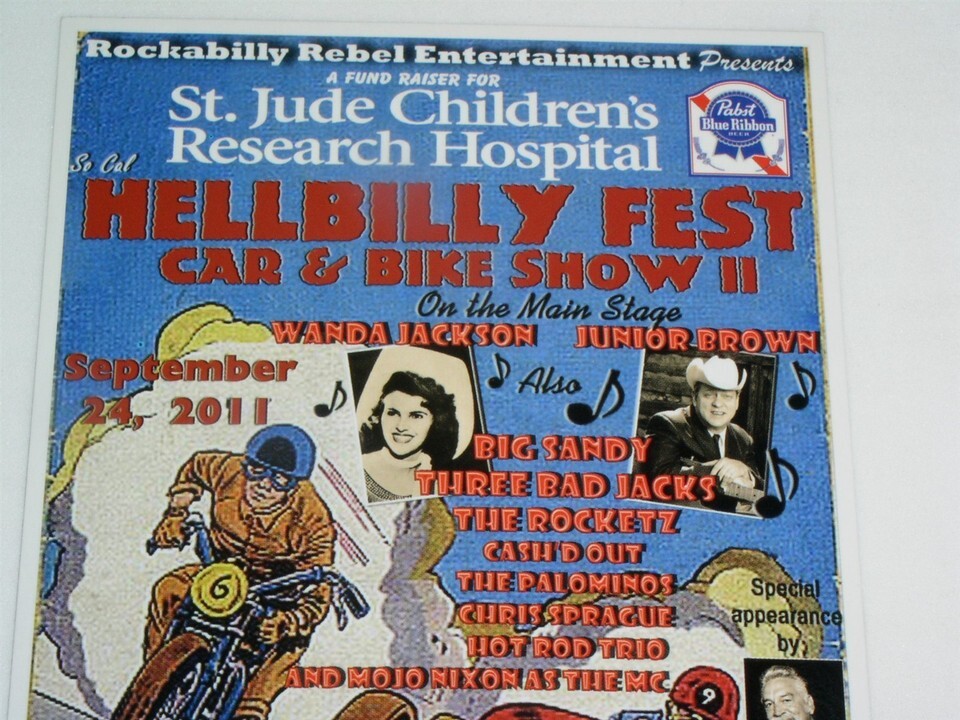 This is a 4" X 6" promo card for the Sept. 24, 2011 Hellbilly Fest Car Bike Show Del Mar Fairgrounds, California. Main stage: Wanda Jackson and Junior Brown. A terrific item for the fan or collector.