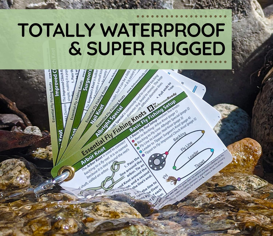 These Fly Fishing Knot Cards are the ultimate waterproof guide to mastering essential fly fishing knots. With clear, step-by-step, color-coded diagrams, each knot is easy to follow, complete with usage tips and descriptions. The compact set includes a fly fishing setup diagram and demonstrates 14 essential knots, making it an invaluable tool for anglers of all levels.