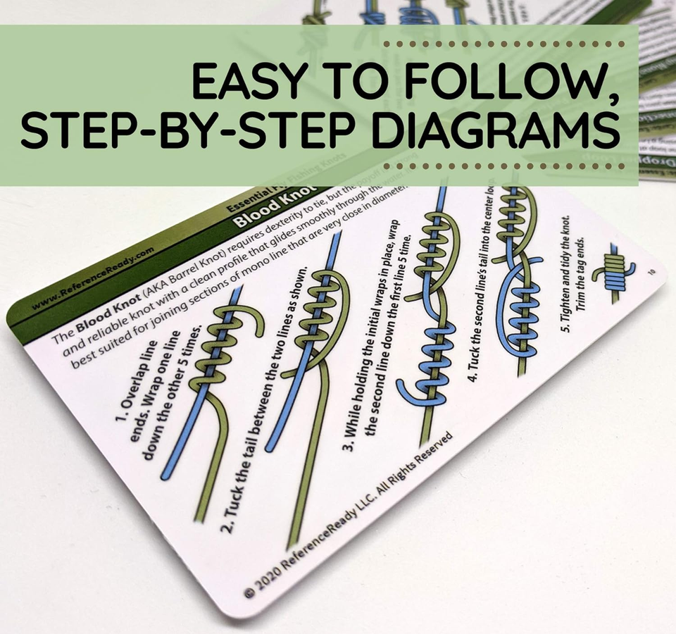 Printed on ultra-durable, thick premium plastic, these cards are built to withstand wet conditions, perfect for the demands of fly fishing. A mini carabiner is included, so you can easily clip the guide to your vest, pack, or tackle box for quick access. Lightweight, portable, and rugged, this pocket guide is crafted to last and help you tie reliable knots every time you?re on the water.