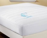 Spills and accidents are no match for this waterproof mattress pad! 200-thread count cotton top with soft polyester fill for added comfort Waterproof polyester backing Elasticized skirt secures pad to mattresses up to 17" deep Machine wash Import