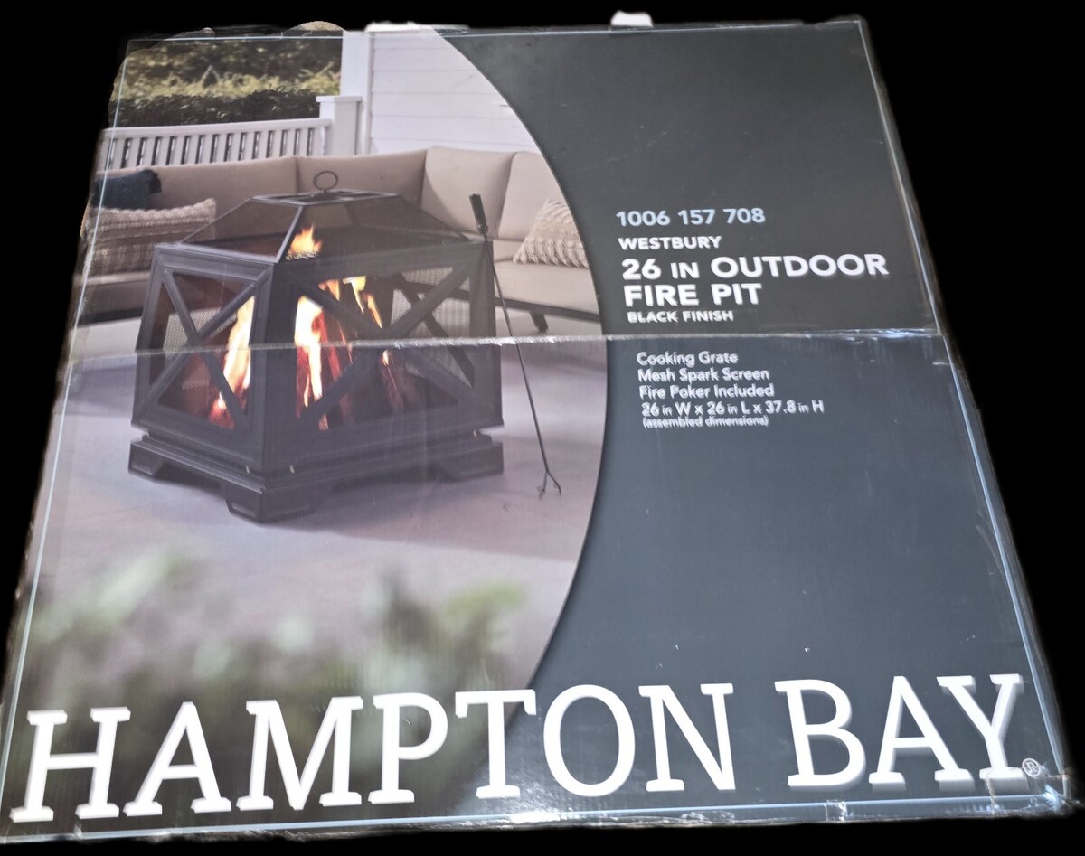 The Westbury Outdoor Square Wood Burning Black Fire Pit by Hampton Bay is a stylish and functional addition to any outdoor space. With a sleek square shape and a matte finish, this fire pit is both visually appealing and durable. Made of metal, it is weather resistant and features a heat resistant coating for safety and longevity. The fire pit is designed for easy assembly and comes with the necessary tools for setup. Perfect for outdoor cooking and gatherings, this fire pit is sure to enhance your outdoor living experience.