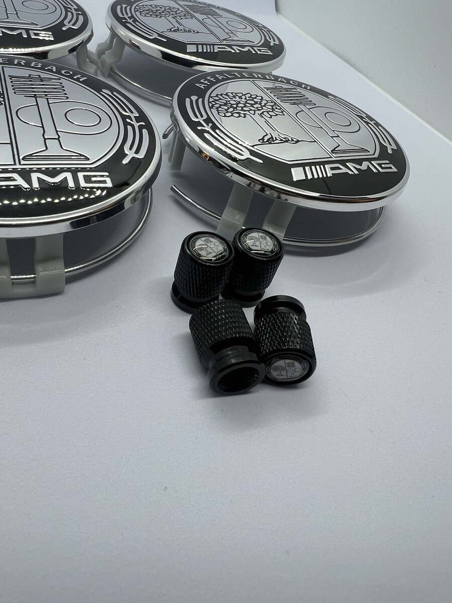 - Wheel Center Caps AMG Affalterbach 75MM for Mercedes Benz Rim With Tire Valves