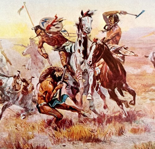 When Blackfeet And Sioux Meet Charles Russell Western 1980 Greeting Card VTG E59