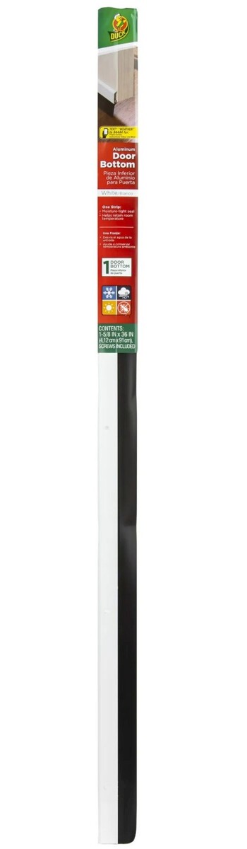 (1) NEW ALUMINUM DOOR BOTTOM WHITE COLOR MANUFACTURED BY DUCK BRAND MPN 08140 UPC# 075353081402. DOORS ARE A COMMON SOURCE OF HIGH HEATING AND COOLING COST THROUGHOUT THE YEAR, DUE TO UNTREATED CRACKS AND OPENINGS, ESPECIALLY THE BOTTOM OF THE DOOR, WHERE COLD AIR CAN BLOW IN OR OUT. THIS DUCK BRAND WHITE ALUMINUM DOOR BOTTOM SEAL WILL PROVIDE A SIMPLE SOLUTION TO BLOCKING DRAFTS AND PREVENTING INSECTS, WATER, DUST AND DEBRIS FROM GETTING INTO YOUR HOME. DESIGNED TO SEAL THE GAPS BETWEEN THE DOOR BOTTOM AND THRESHOLD, THIS IS A CRITICAL SEAL TO KEEP COLD AIR OUT IN THE WINTER AND THE COOL AIR IN DURING THE SUMMER MONTHS. YOU WILL RECEIVE ONE (1) NEW DUCK BRAND 36" length ALUMINUM DOOR BOTTOM IN WHITE COLOR, AS PICTURED, SHIPPED BY USPS....