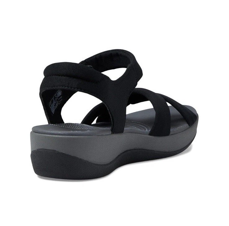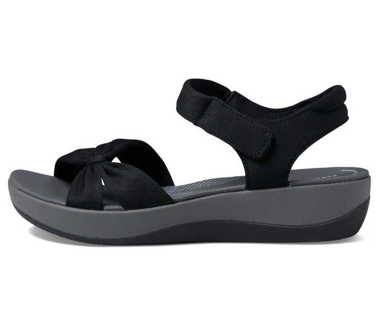 Woman's Sandals Clarks Arla Shore Black Hook & Loop Comfortable Size 6.5M