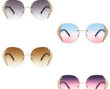 Women Rimless Round Rhinestone Oversize Sunglasses