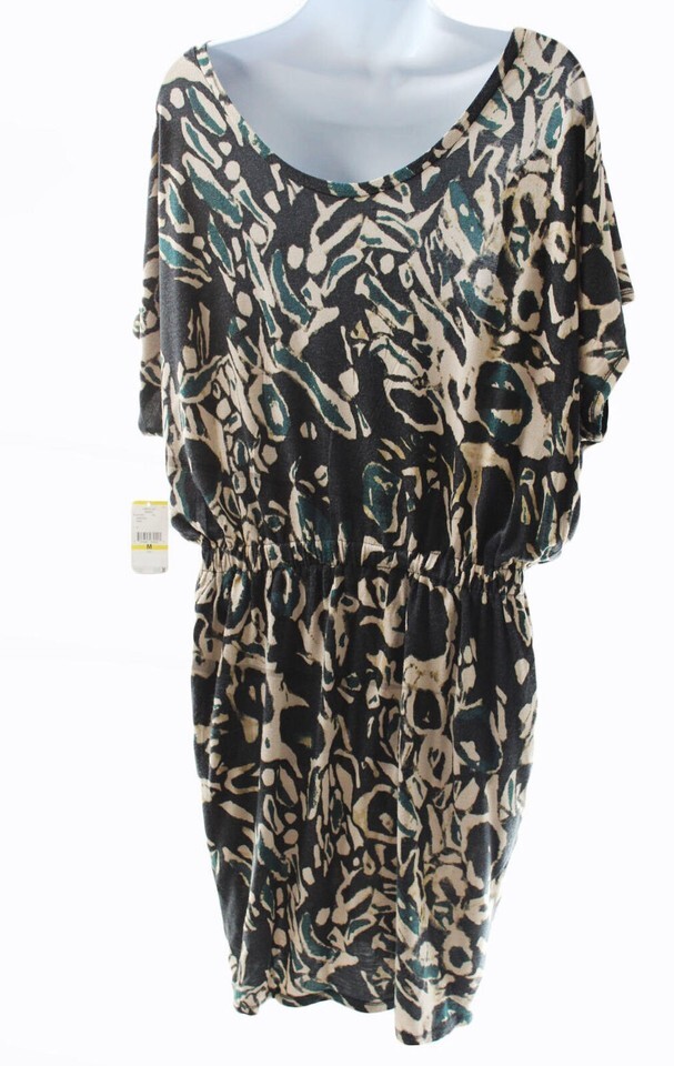 - Women's Dress Rachel Roy Short Sleeve Printed Dress Sz M Black/Tan/Green