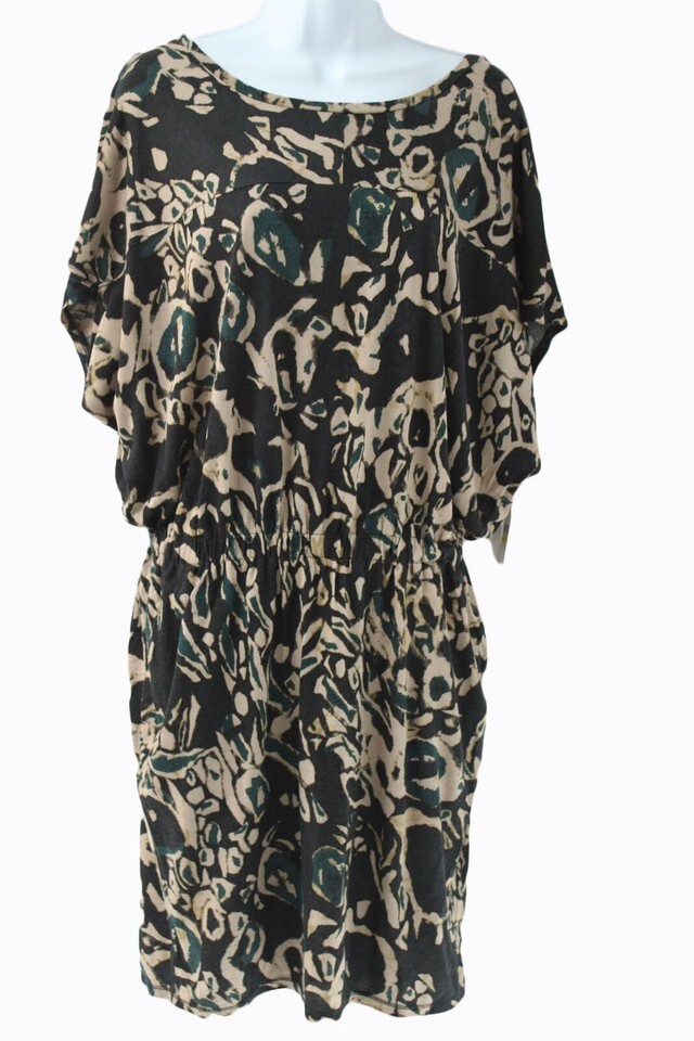 Women's Dress Rachel Roy Short Sleeve Printed Dress Sz M Black/Tan/Green